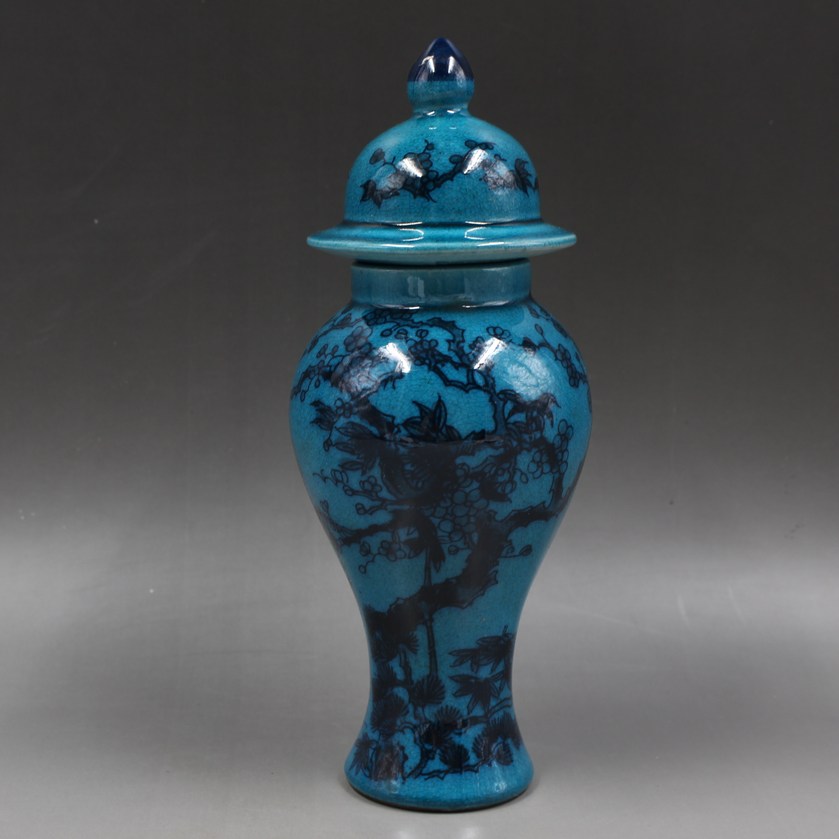 清乾隆年制藍釉墨彩喜上眉梢將軍罐仿古家居瓷器擺件古董古玩收藏1入