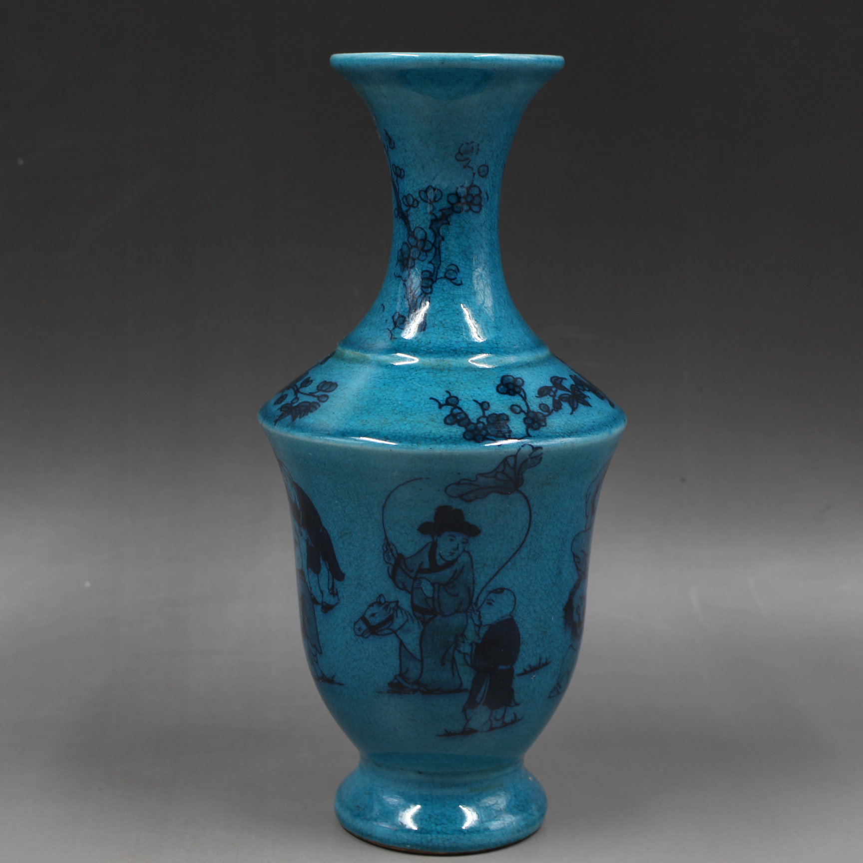 清乾隆年制藍釉墨彩人物方尖瓶仿古老貨家居瓷器擺件古董古玩收藏1入