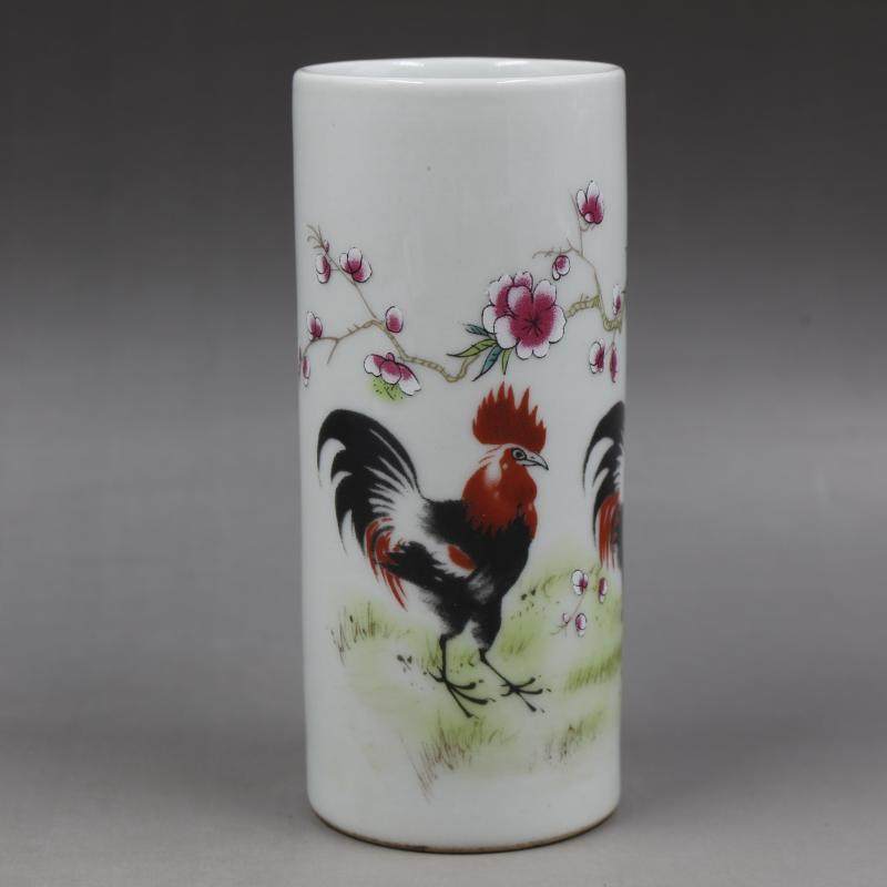 民國江西瓷業公司粉彩全家福雞筆筒文房擺件老貨瓷器收藏古董古玩1入