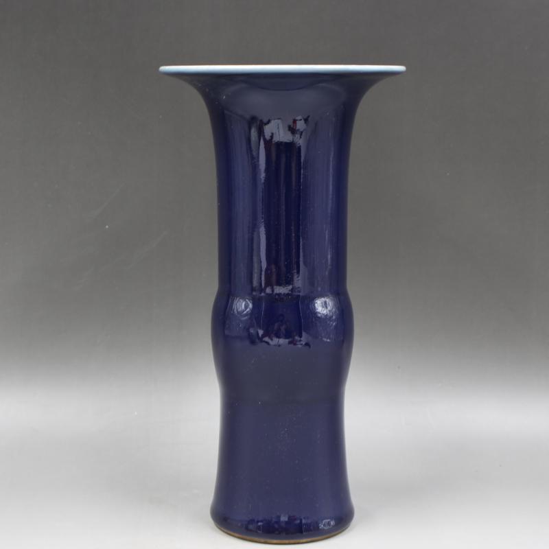 大清康熙年制祭藍釉花觚瓶手工仿古老貨瓷器家居擺件古董古玩收藏1入