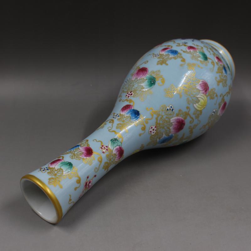 大清乾隆年制豆青釉粉彩描金南瓜紋膽瓶仿古瓷器家居擺件古董古玩1入