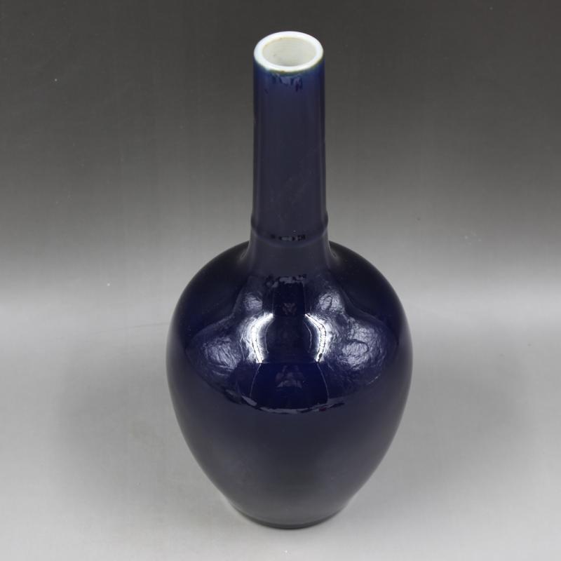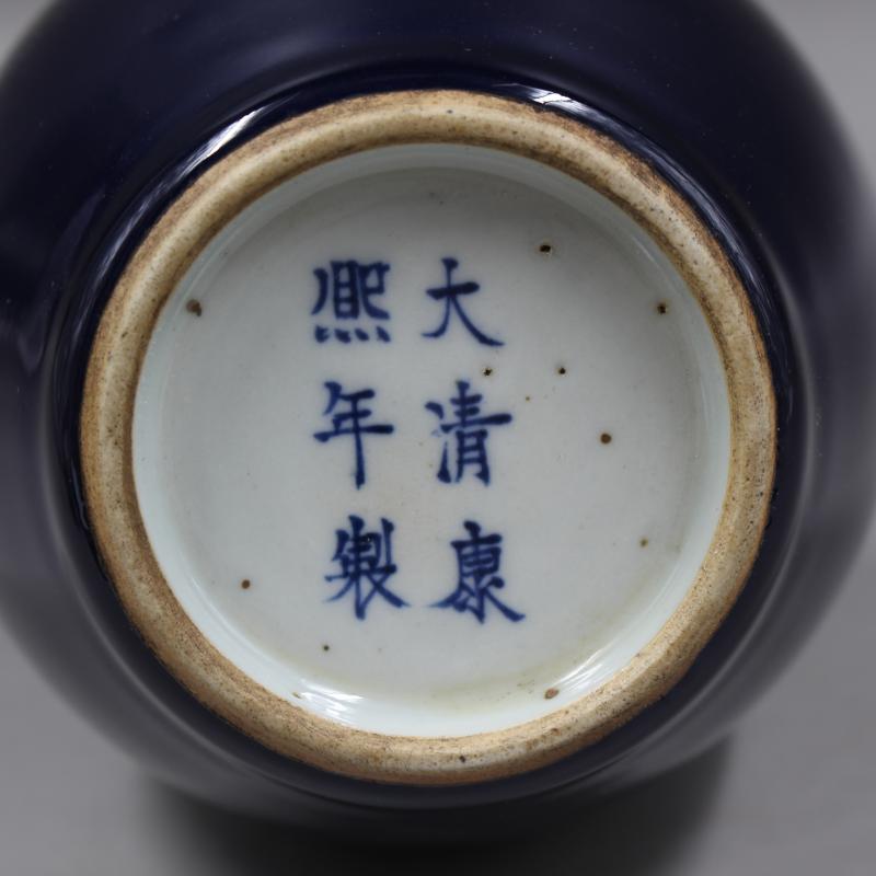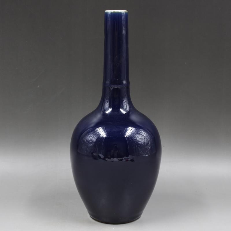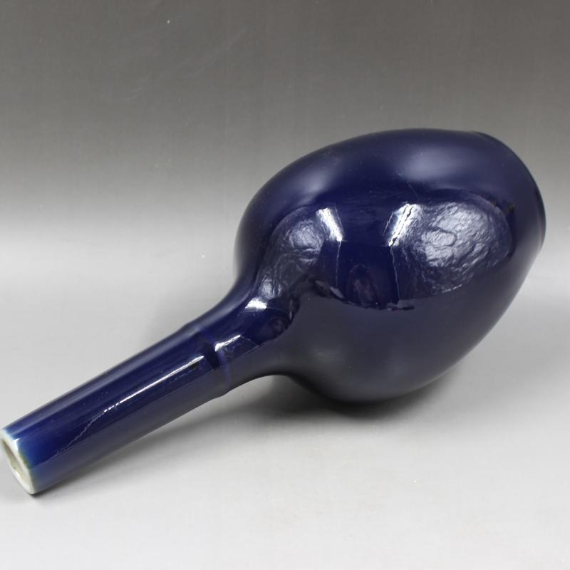 清康熙年制祭藍釉竹節膽瓶手工仿古老貨瓷器家居擺件古董古玩收藏1入
