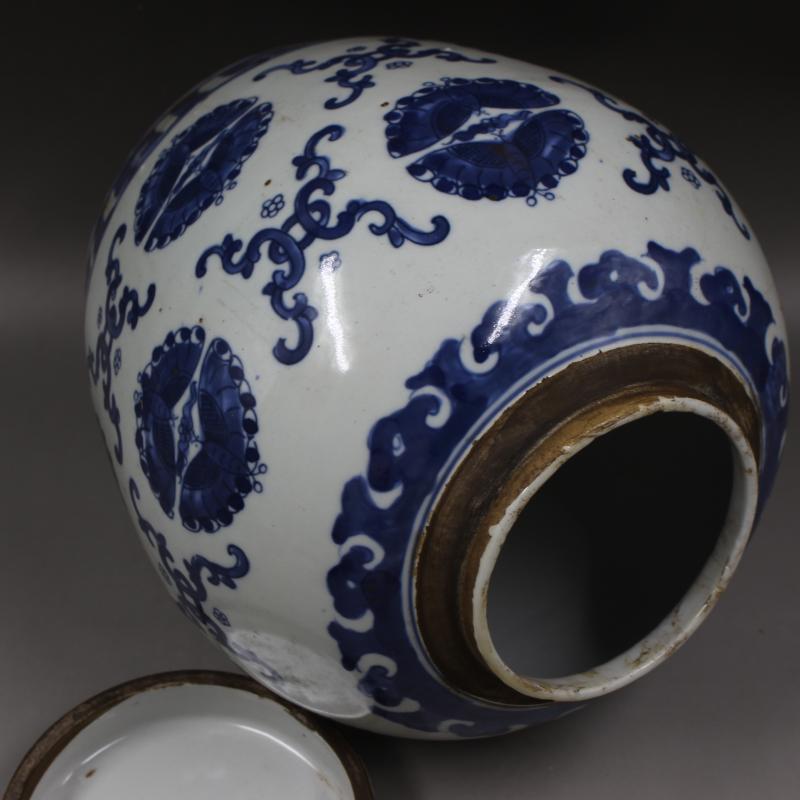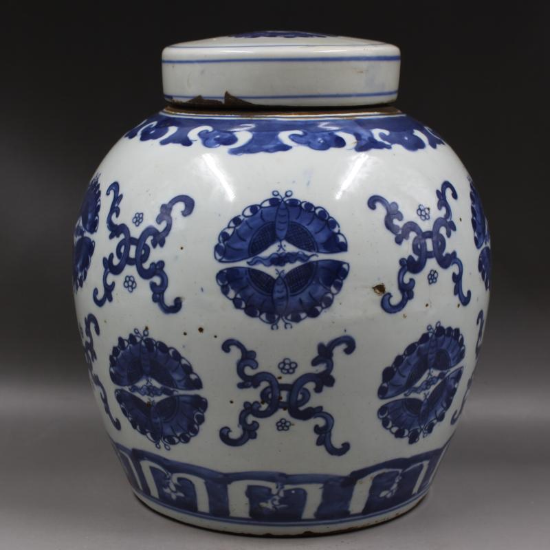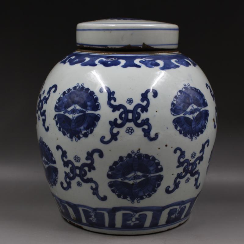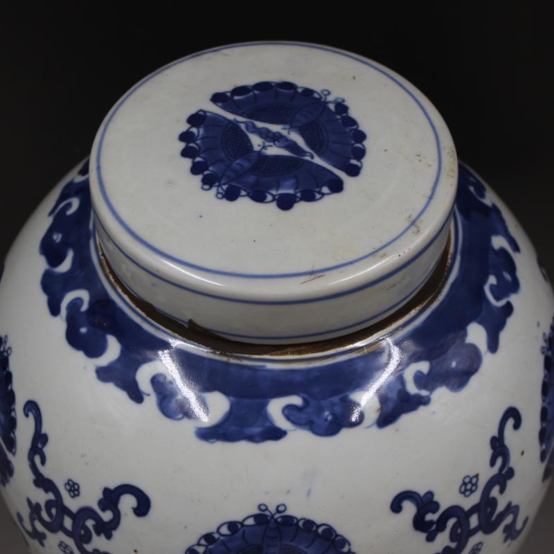 清康熙年制青花蝴蝶花紋大罐仿古老貨收藏家用擺件瓷器古董古玩1入