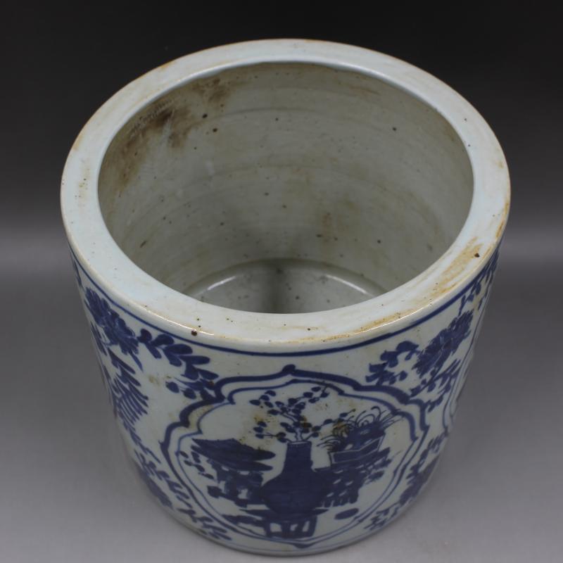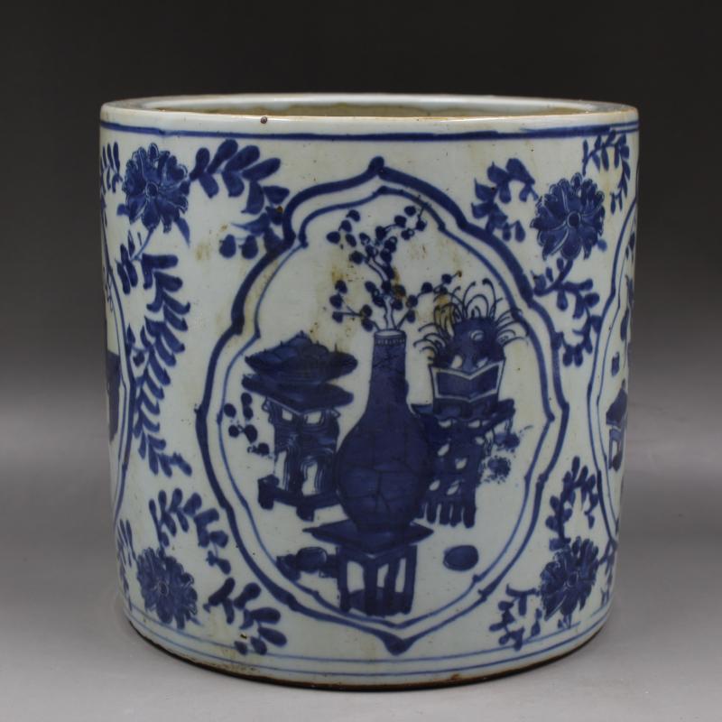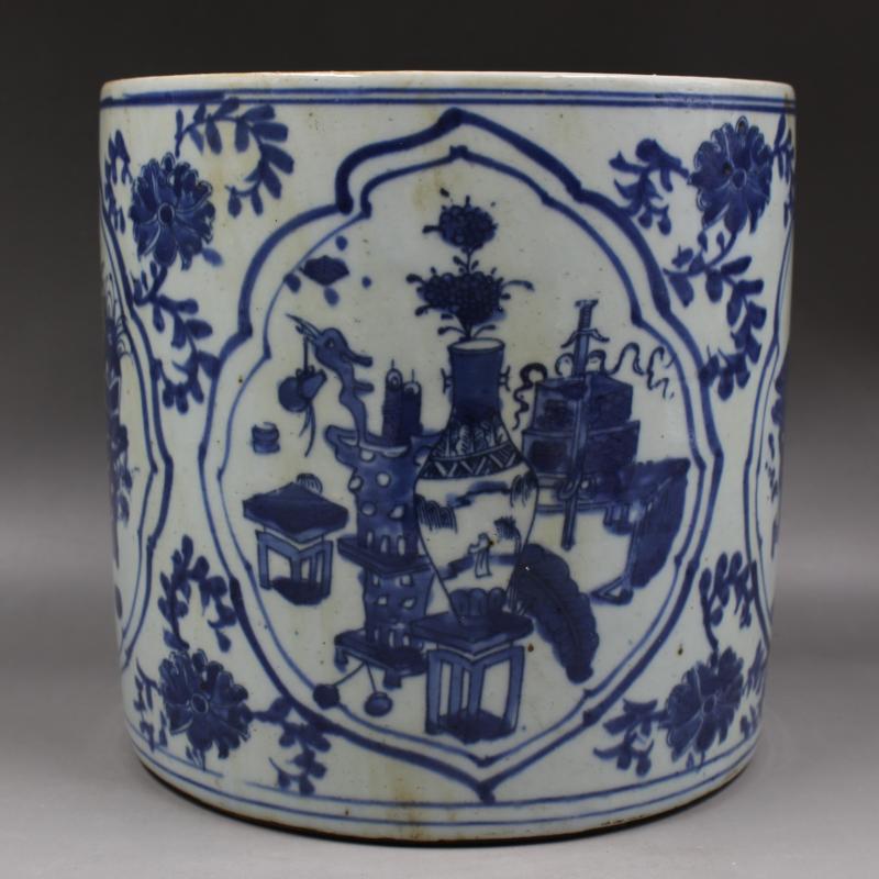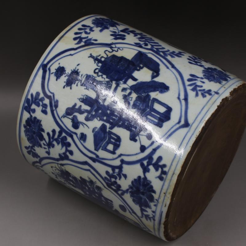 清康熙年制青花博古紋筆海筆筒仿古文房瓷器家居擺件古董古玩收藏1入