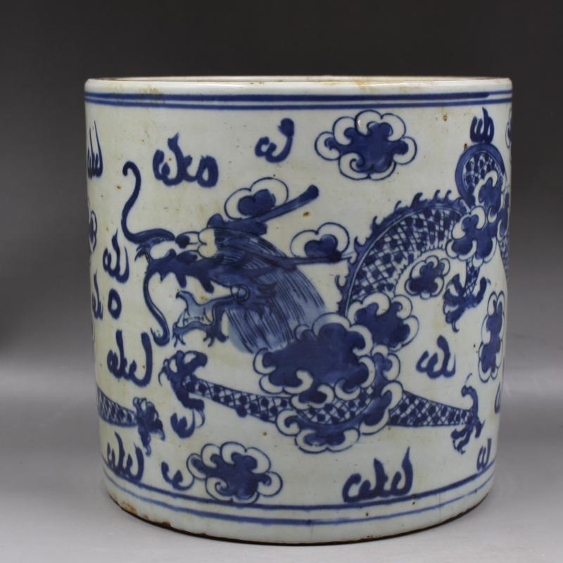 清康熙年制青花云龍紋筆海筆筒仿古文房瓷器家居擺件古董古玩收藏1入