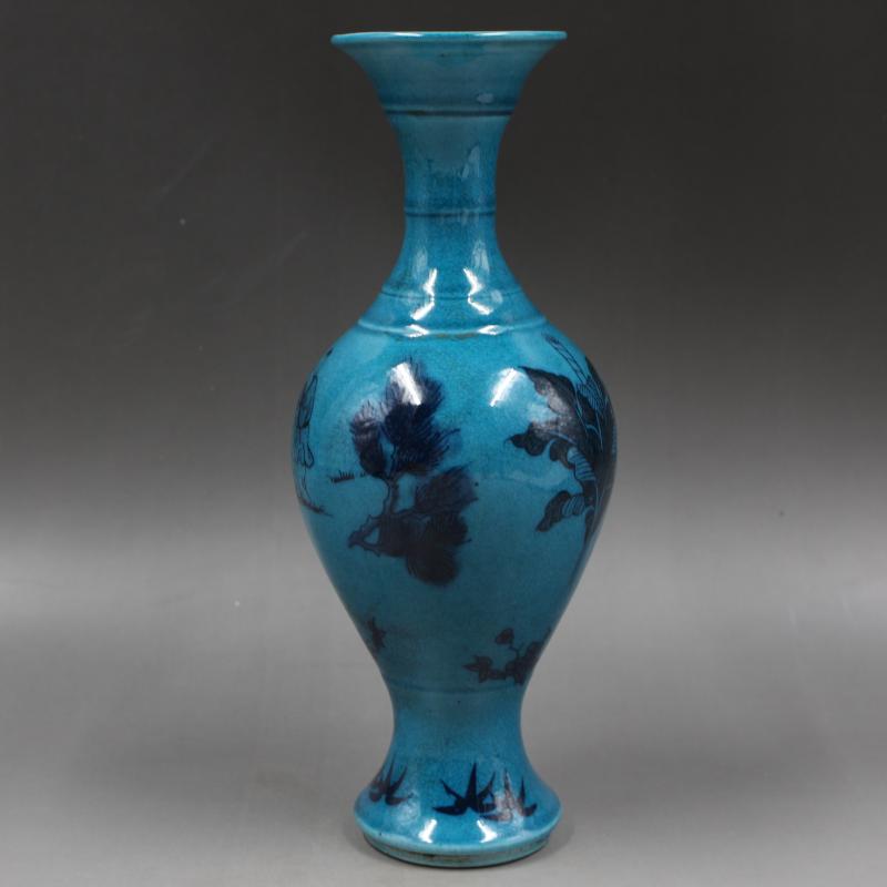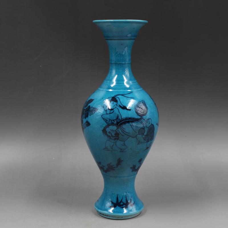 大清乾隆年制藍釉青花人物魚尾瓶仿古老貨瓷器家居擺件古董古玩1入