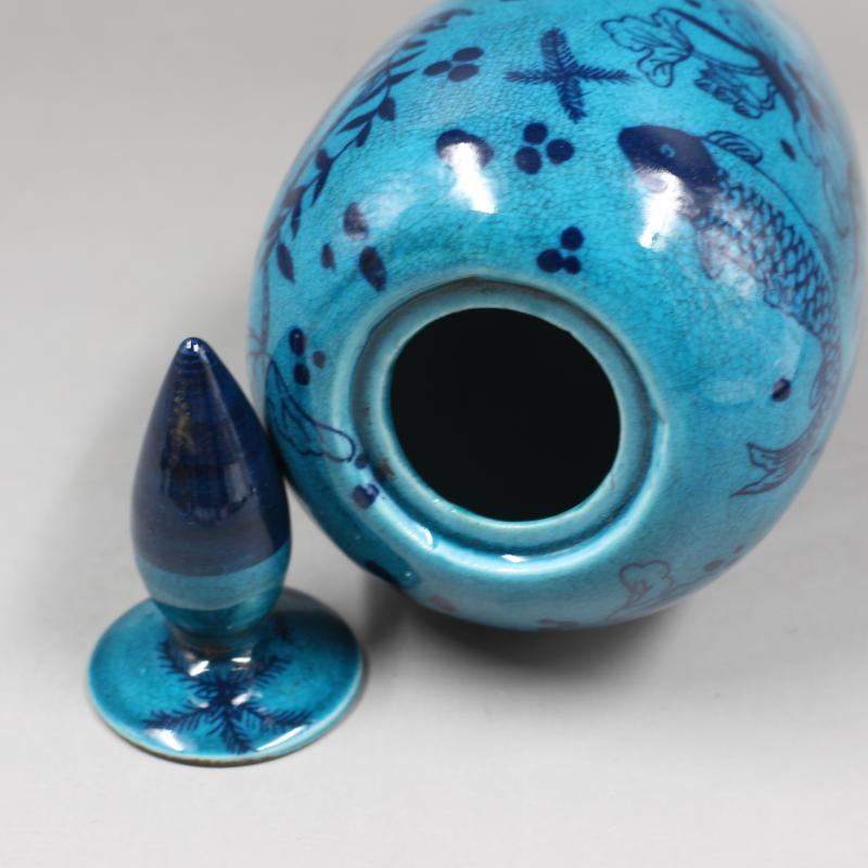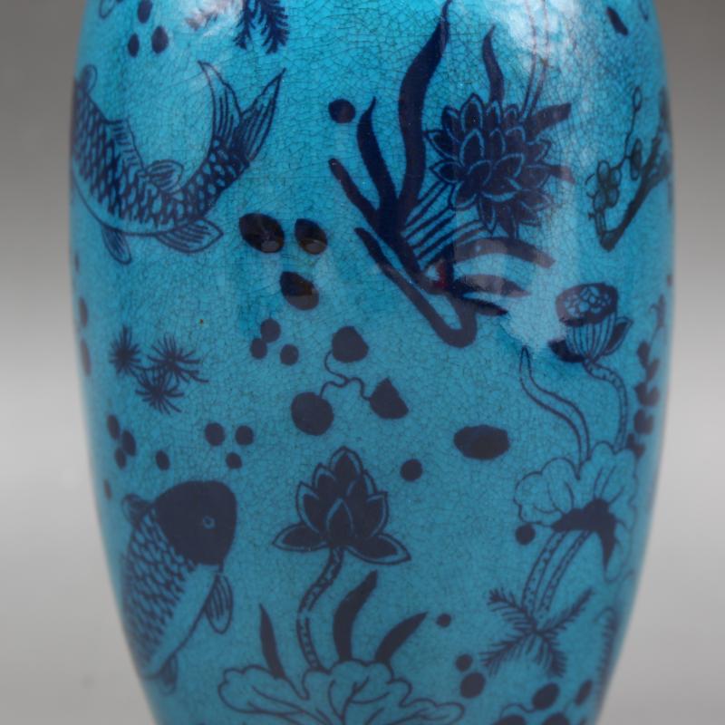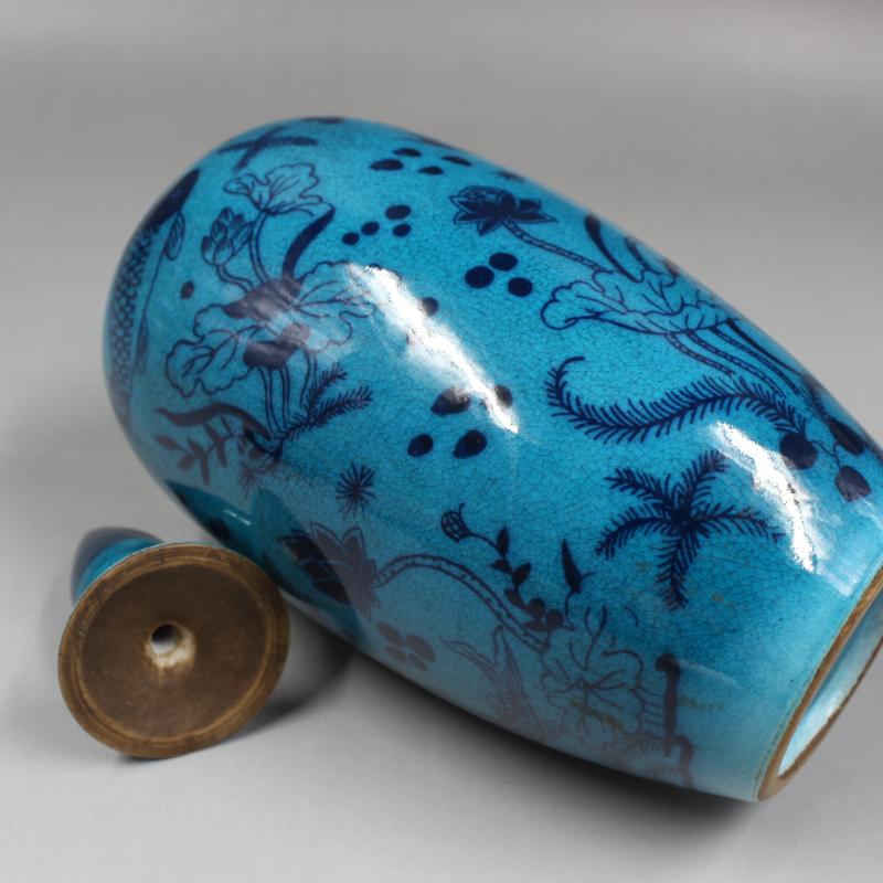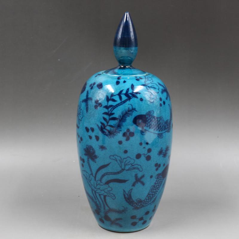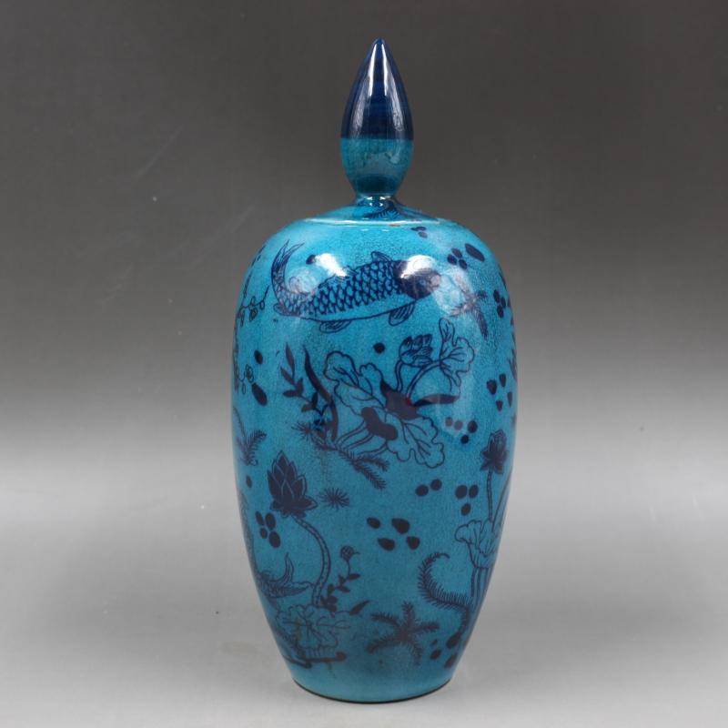 大清乾隆年制藍釉青花魚澡紋茶葉罐仿古老貨瓷器家居擺件古董古玩1入