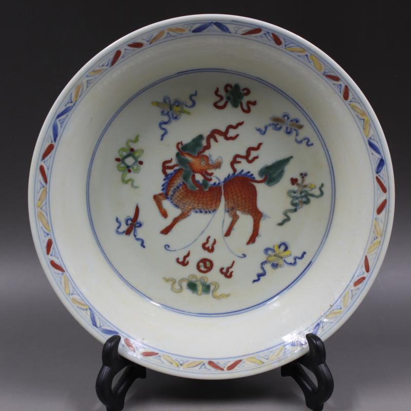 大明成化年制青花斗彩麒麟紋碗小盆盤手繪家居瓷器擺件古董古玩1入