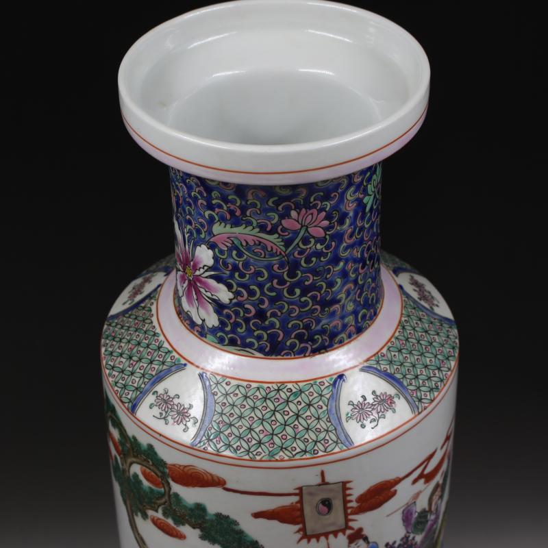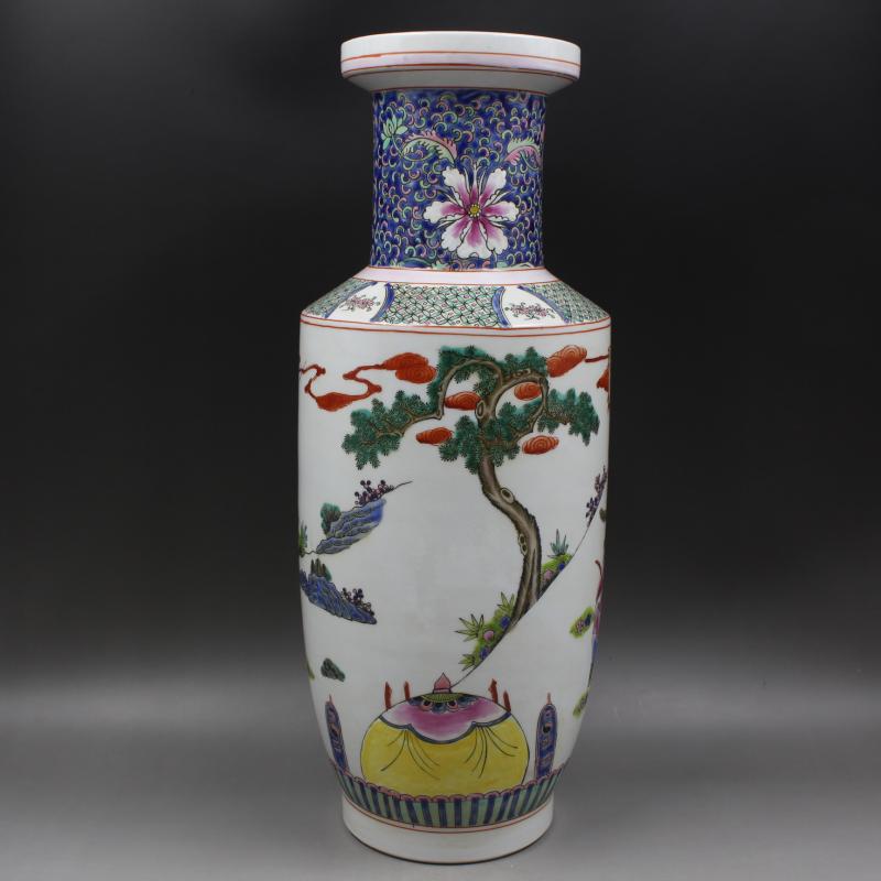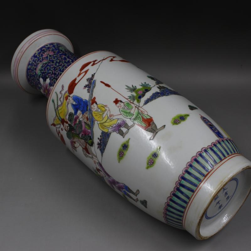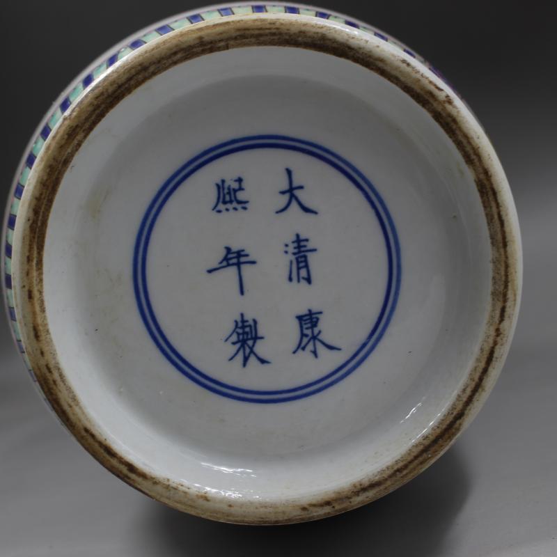 大清康熙年制粉彩人物戰將棒槌瓶家居景點瓷器擺件古董古玩收藏1入