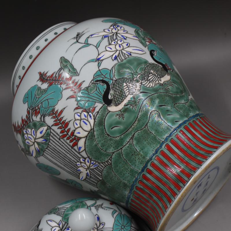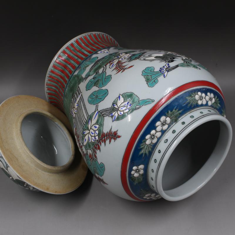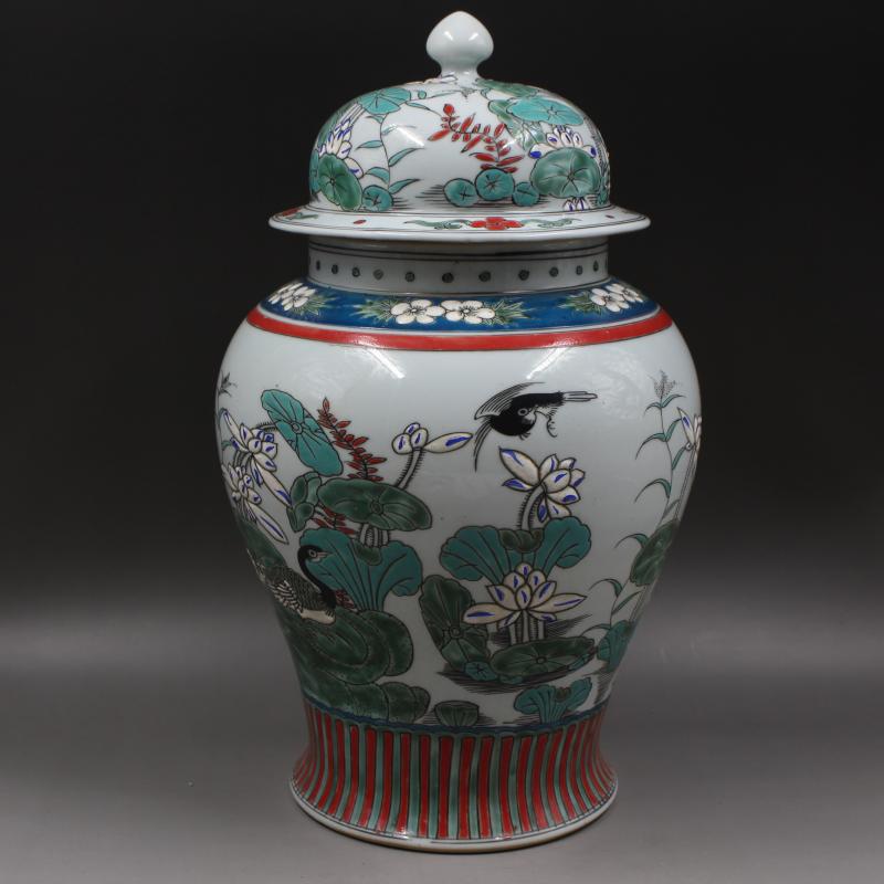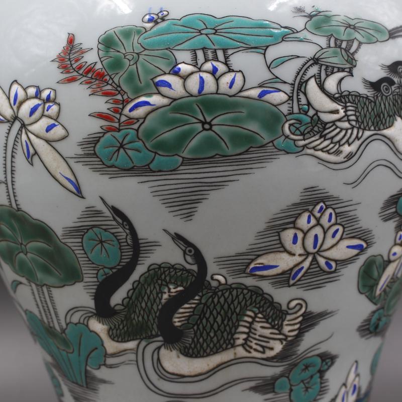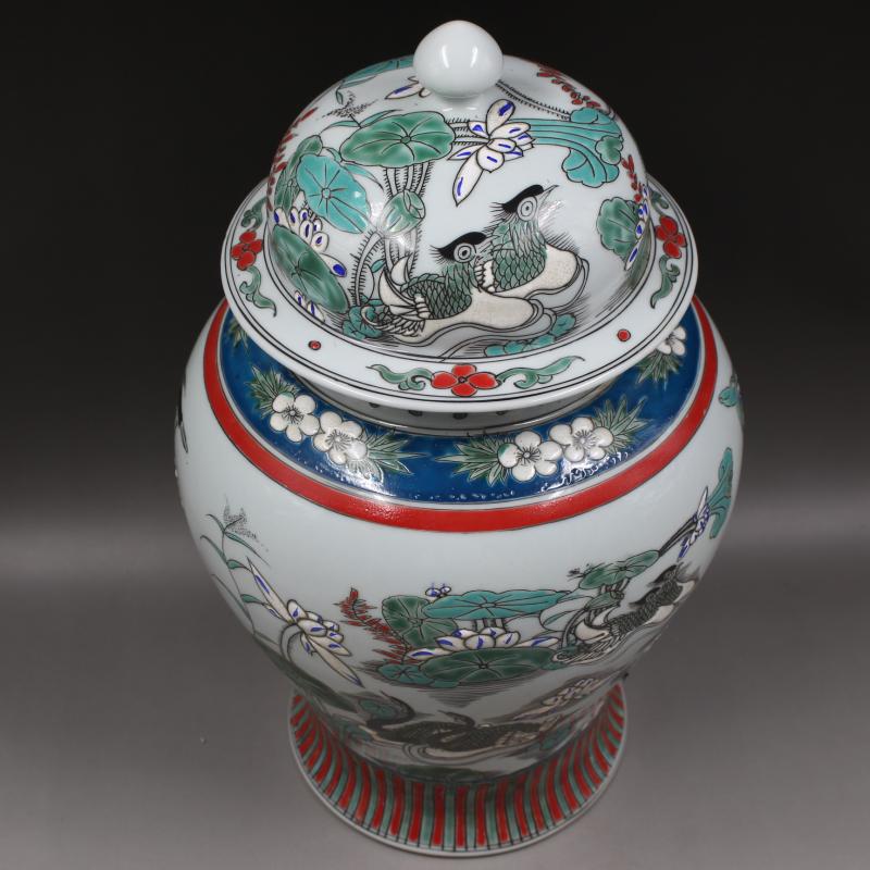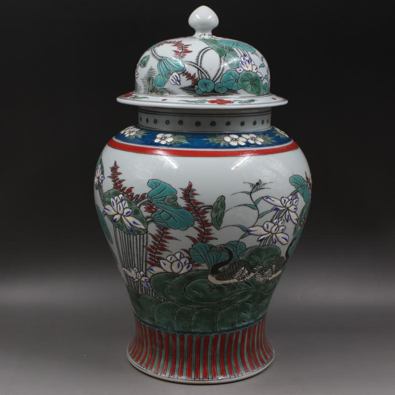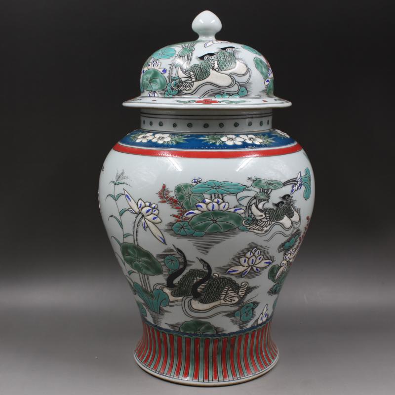 清康熙年制粉彩荷花鴛鴦紋將軍罐仿古家居擺件瓷器古董古玩收藏1入