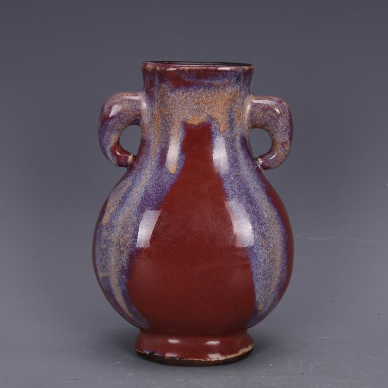 清乾隆年制祭紅窯變釉象耳瓶手工仿古老貨瓷器家居中式古玩擺件1入
