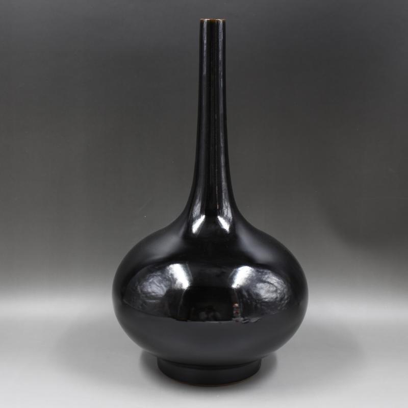 大清雍正年制烏金釉膽瓶手工仿古老貨瓷器家居擺件古董古玩收藏1入
