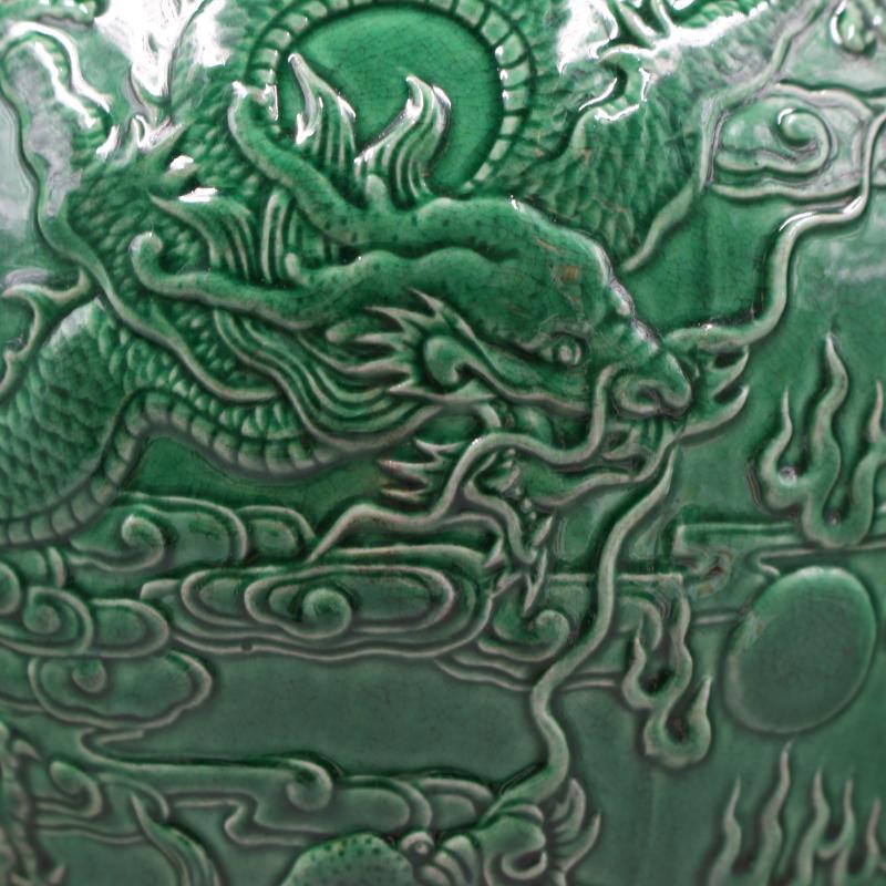 大清乾隆年制綠地浮雕刻龍紋梅瓶仿古老貨瓷器家居擺件古董古玩1入