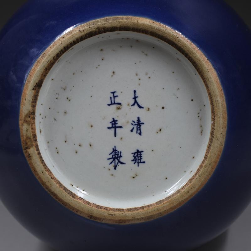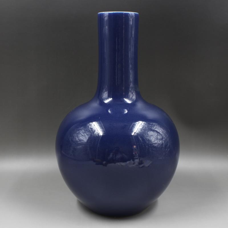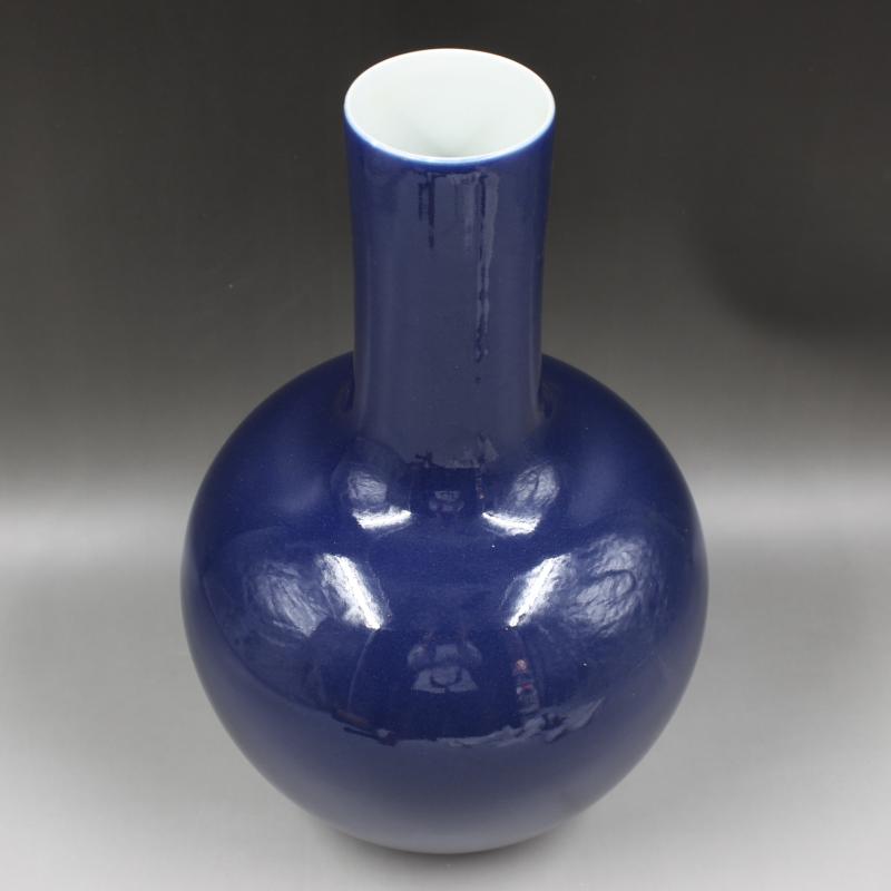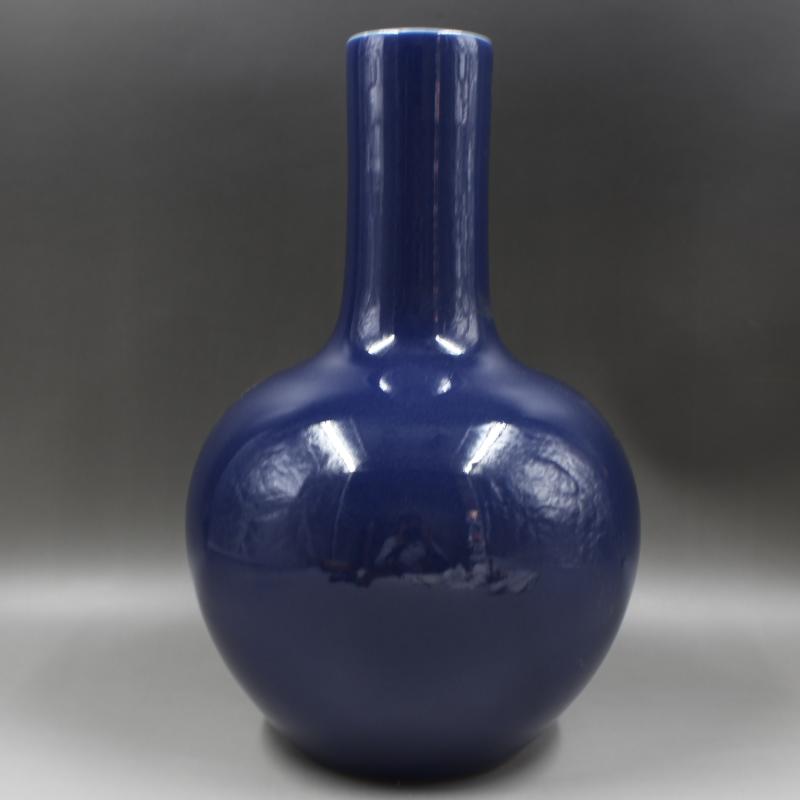 大清雍正年制祭藍釉天球瓶手工仿古老貨瓷器家居擺件古董古玩收藏1入