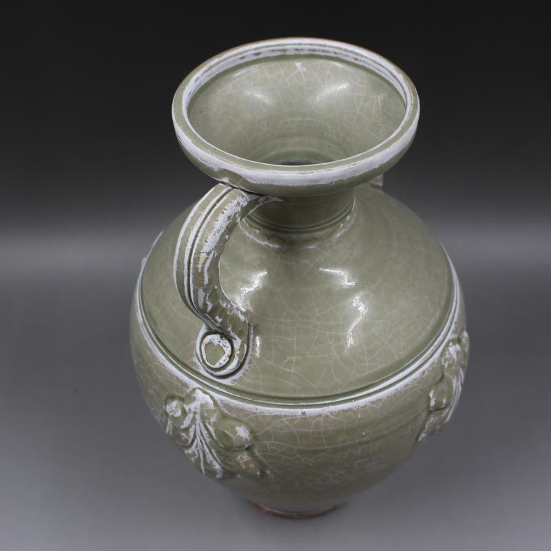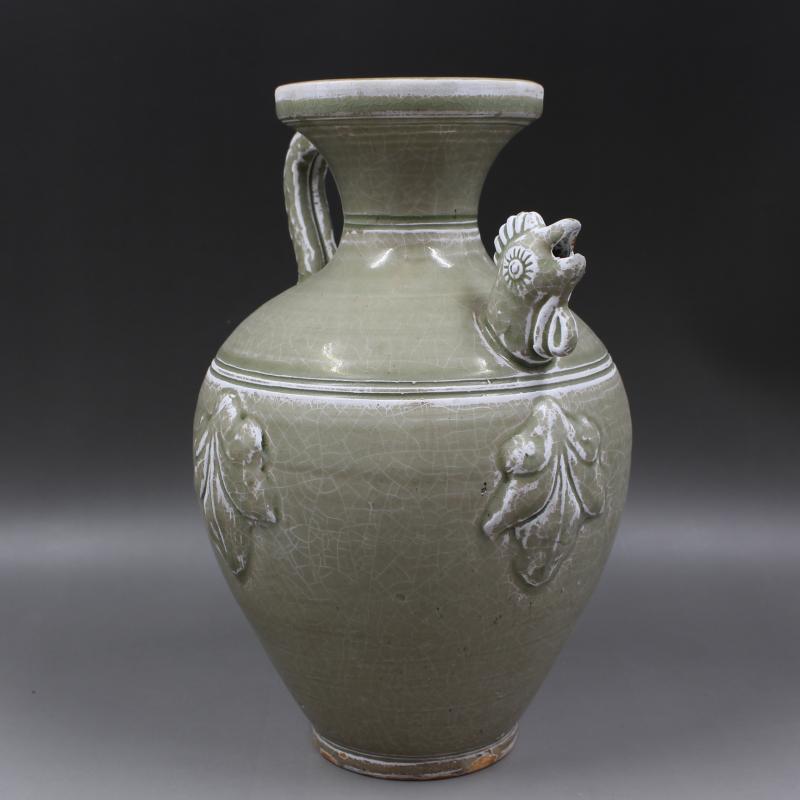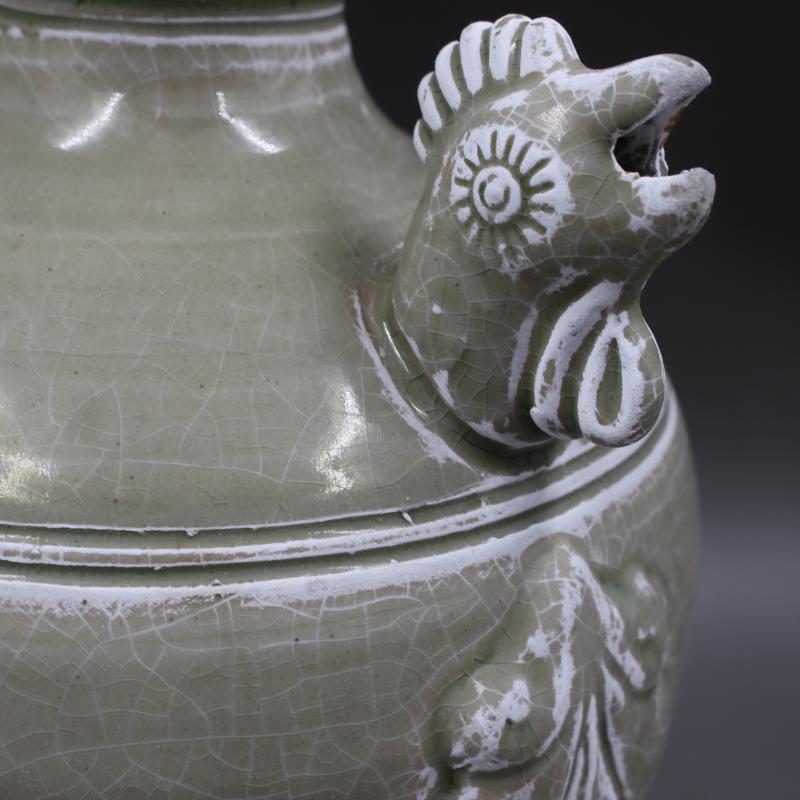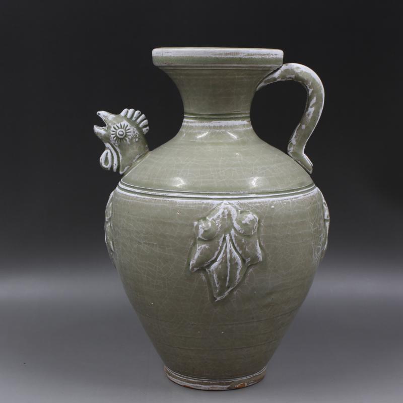 西晉越窯浮雕刻花雞頭壺手工仿古老貨瓷器家居擺件古董古玩收藏1入