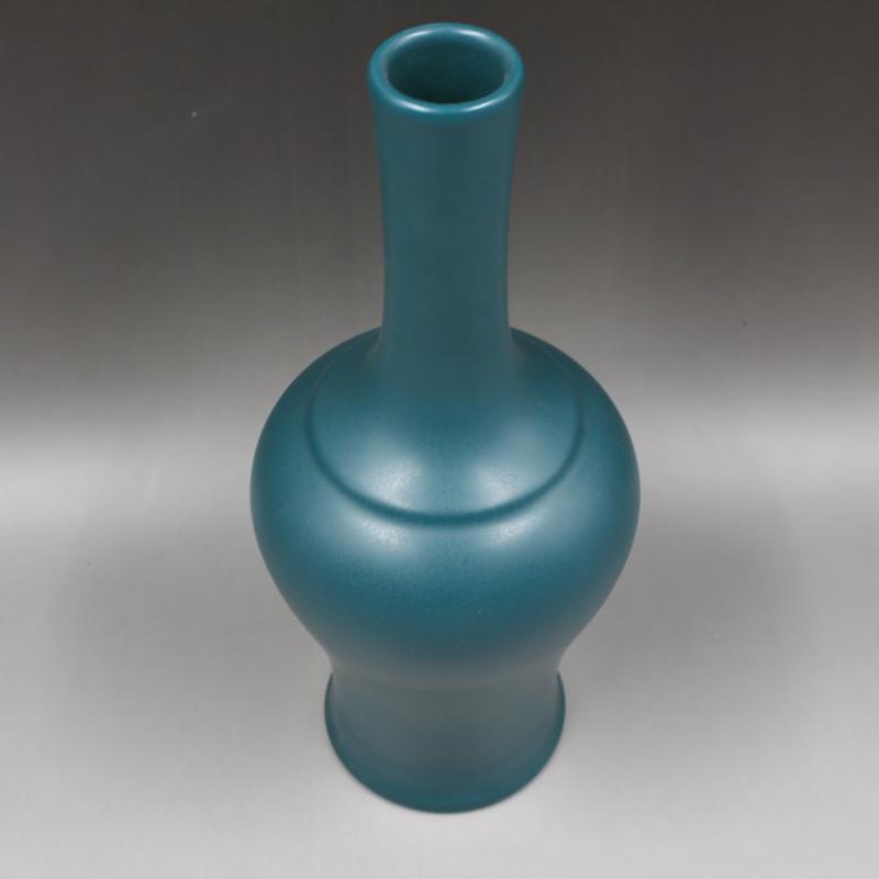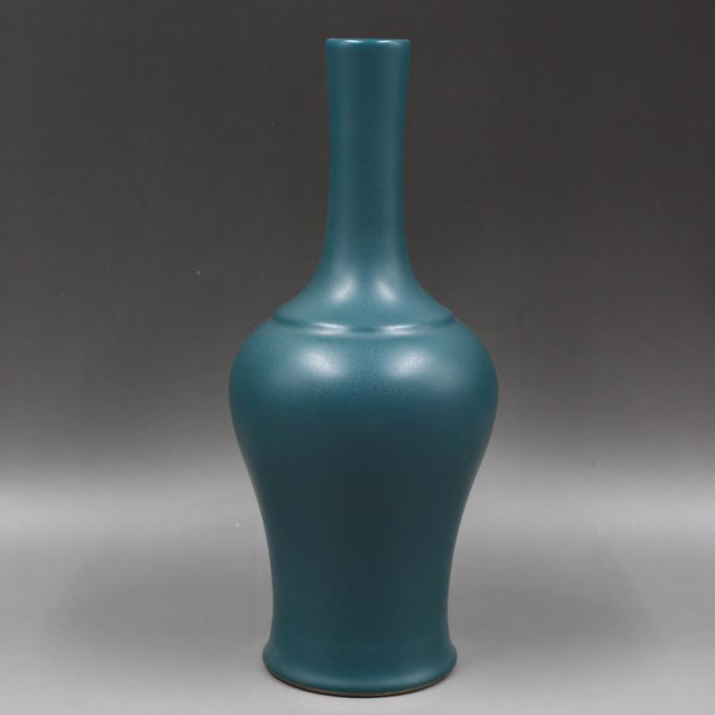 清雍正年制孔雀綠釉搖鈴尊瓶家居擺件老貨仿古瓷器古董古玩收藏1入