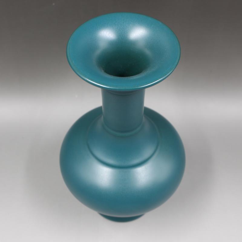 清雍正年制孔雀綠釉扁肚竹節瓶家居擺件老貨仿古瓷器古董古玩收藏1入