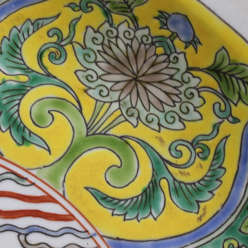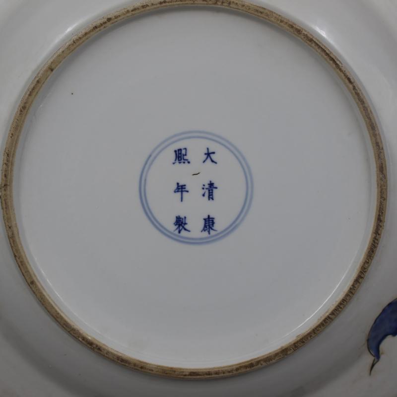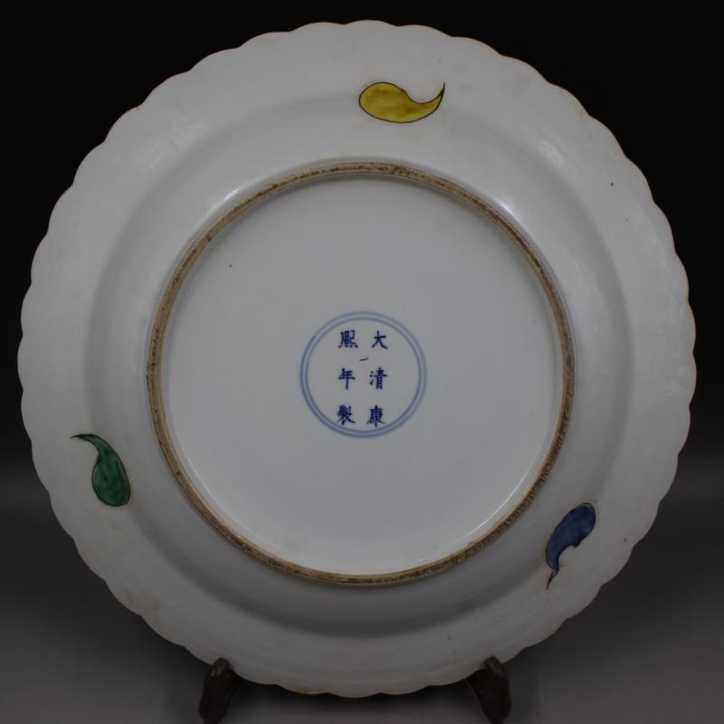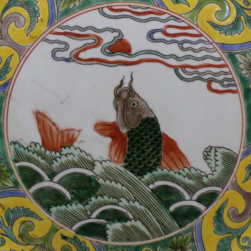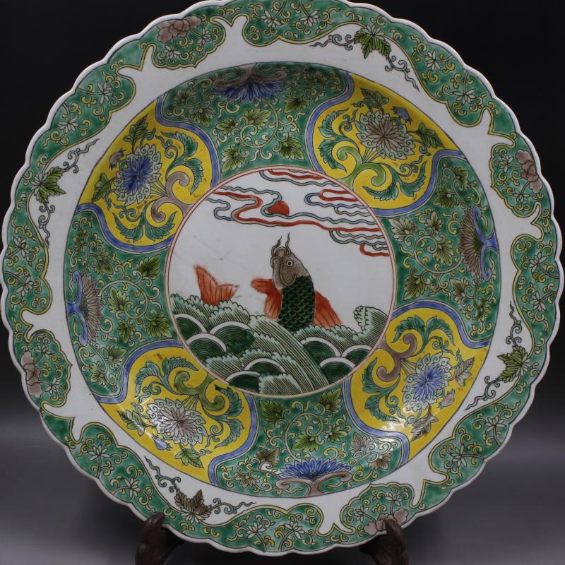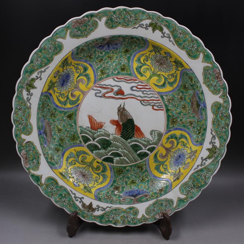 清康熙粉彩鯉魚跳龍門葵口大盤仿古出土家居裝飾瓷器擺件古玩收藏1入