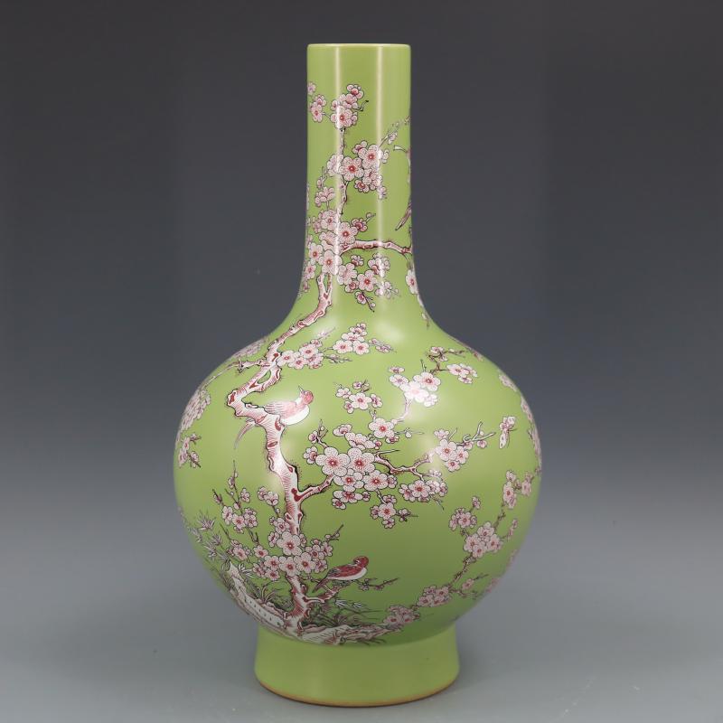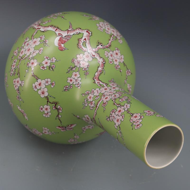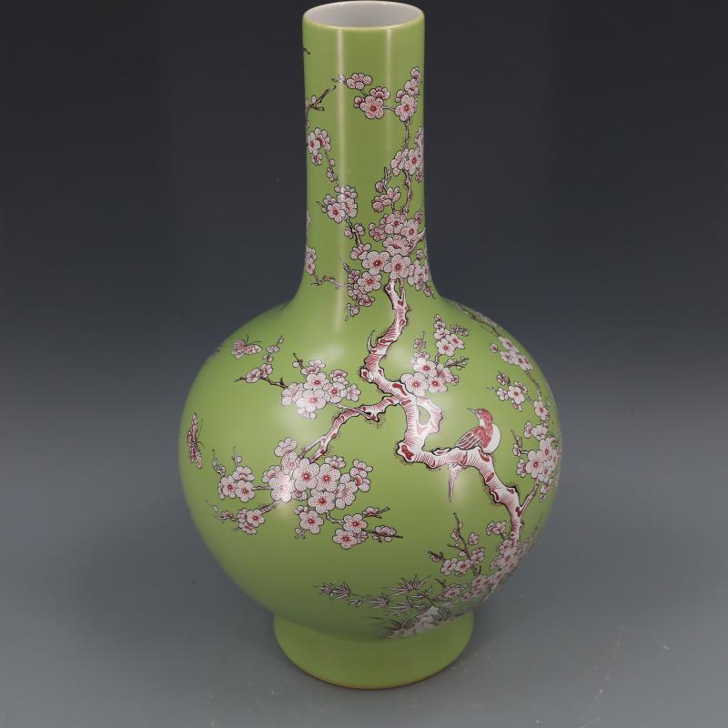 清康熙年制無光釉紅彩喜上眉梢高足天球瓶仿古瓷器家居古玩擺件1入