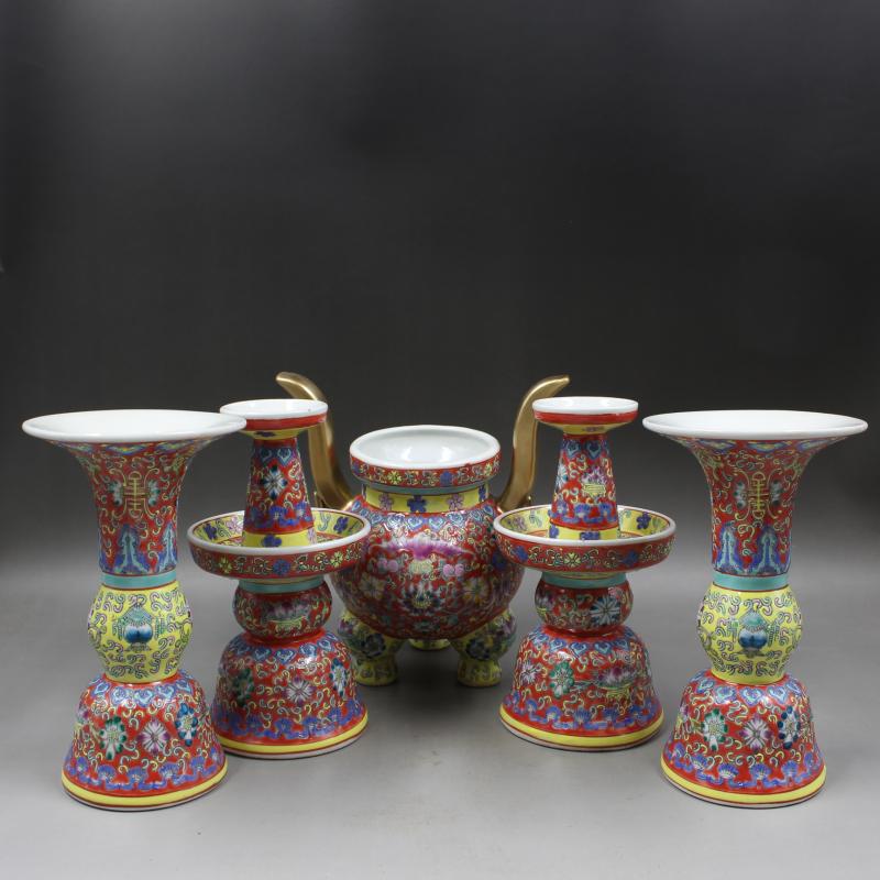 大清乾隆年制粉彩福壽五供仿古家居擺件裝飾瓷器古董古玩老貨收藏1入