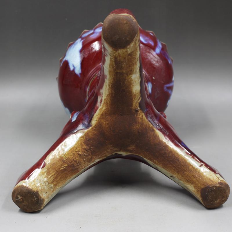清雍正年制窯變郎紅釉燭臺手工仿古老貨瓷器家居裝飾擺件古董古玩1入