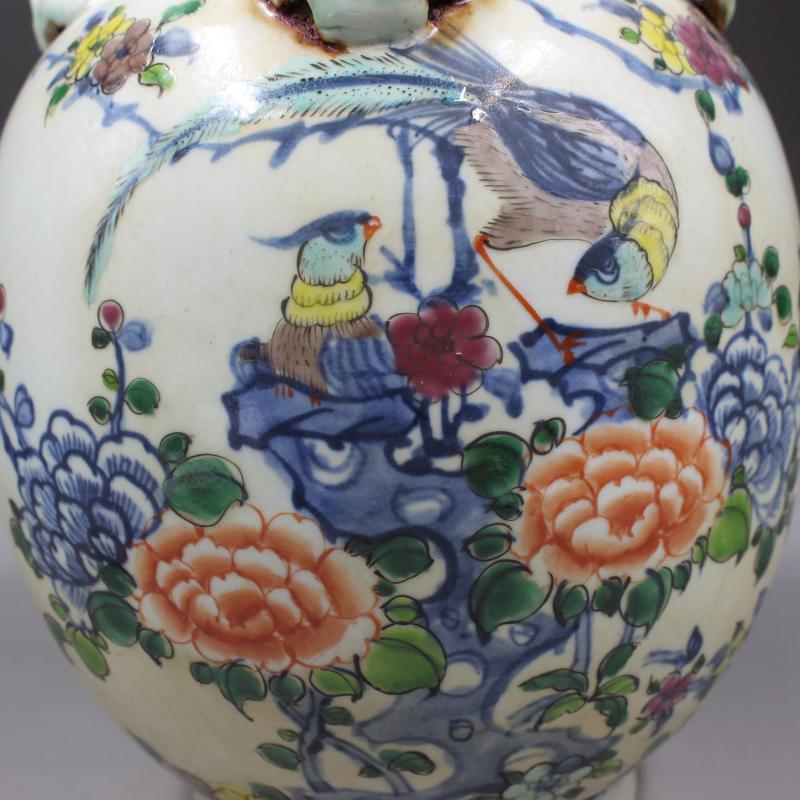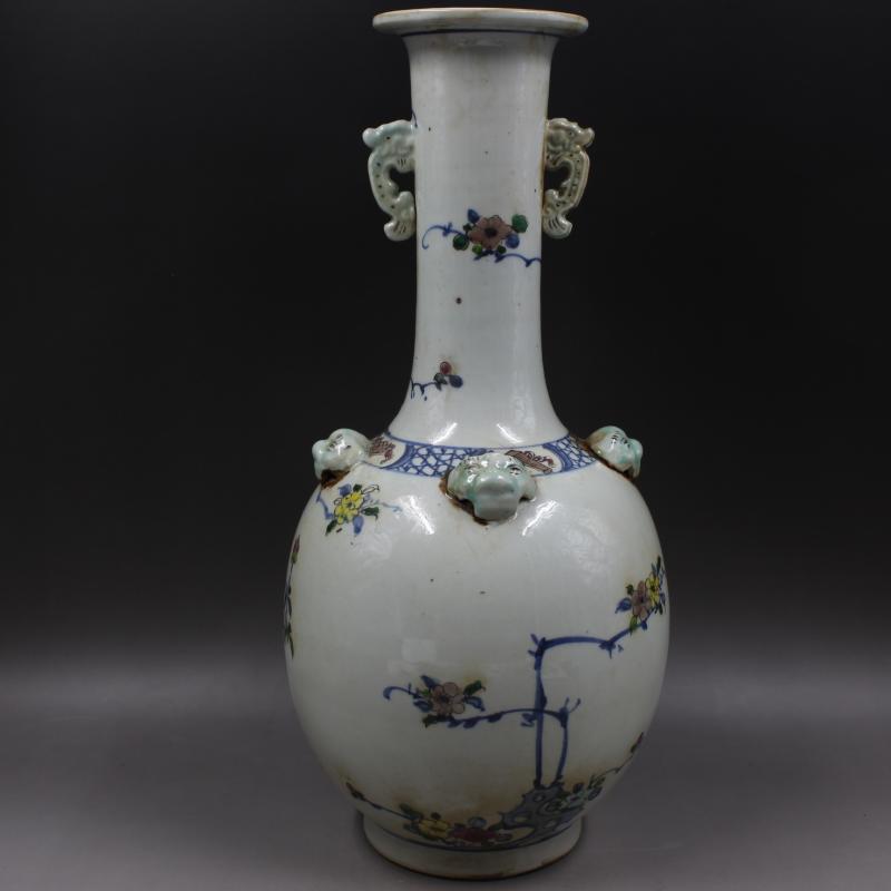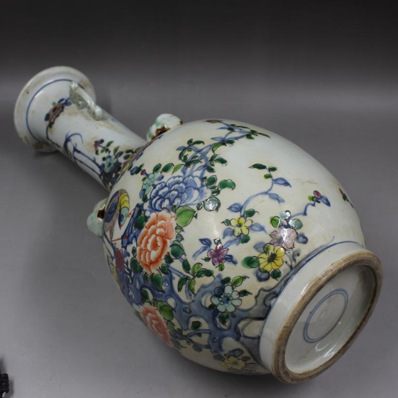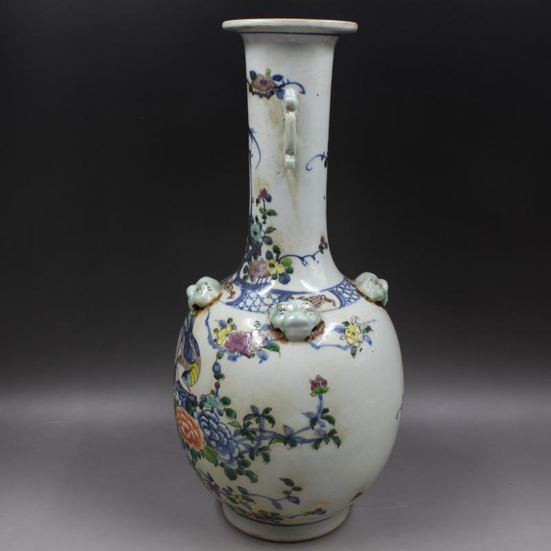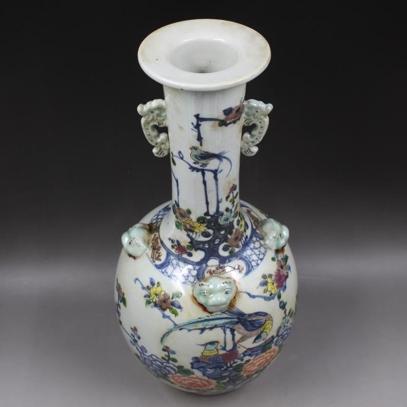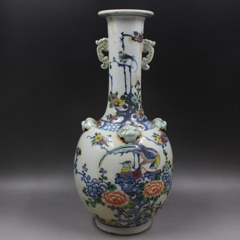 清光緒年制青花斗彩花鳥長頸瓶手繪仿古老貨瓷器家居擺件古董古玩1入