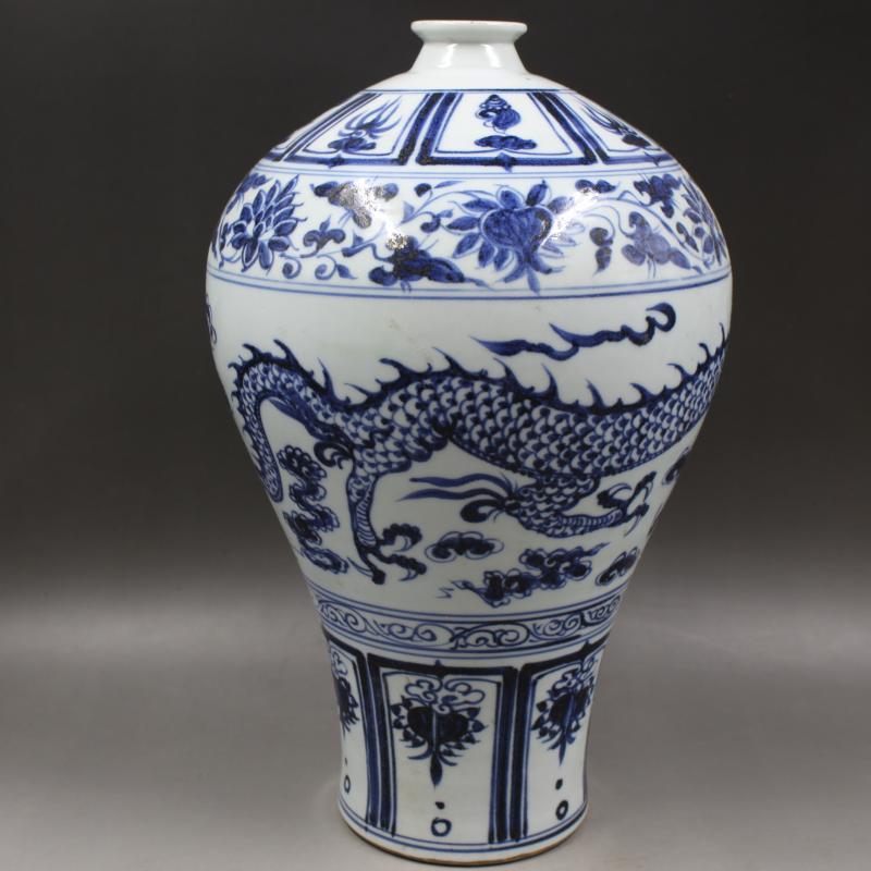 元青花云龍紋梅瓶純手繪仿古老貨家居裝飾瓷器擺件古董古玩收藏1入