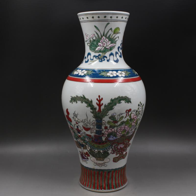 大清康熙年制五彩博古紋觀音瓶家居仿古老貨瓷器擺件古董古玩收藏1入