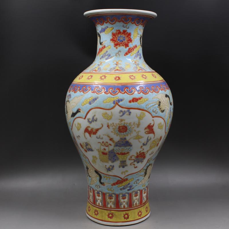 清乾隆年制夜光瓷粉彩仙鶴博古紋觀音瓶民間收藏家居擺件古董古玩1入