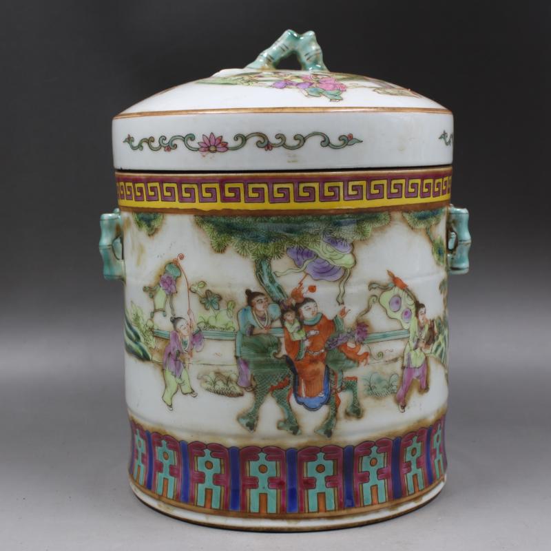 大清同治年制同治彩人物故事蓋罐手繪仿古老貨瓷器擺件古董古玩1入