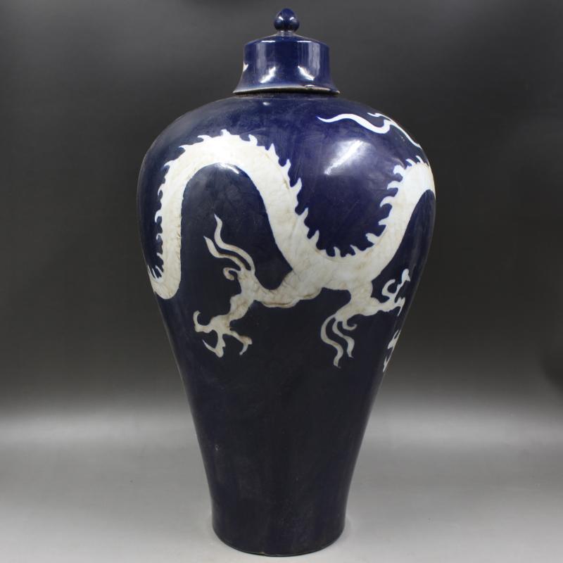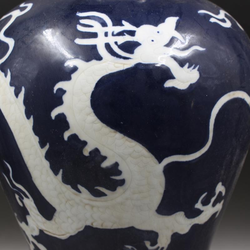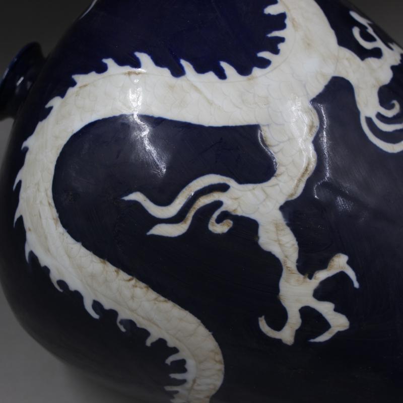 元代霽藍釉留白刻龍紋梅瓶做舊仿出土古瓷器手工古董古玩收藏擺件1入