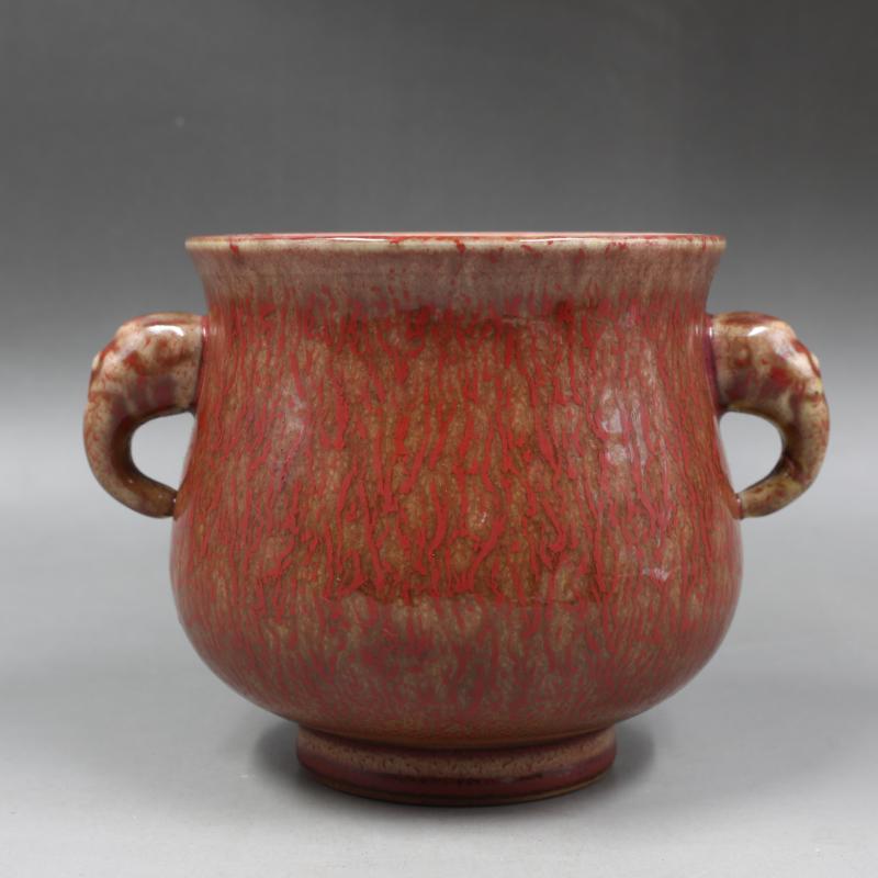 大清康熙年制窯變美人醉象鼻香爐家居復古擺件仿古瓷器古董古玩1入