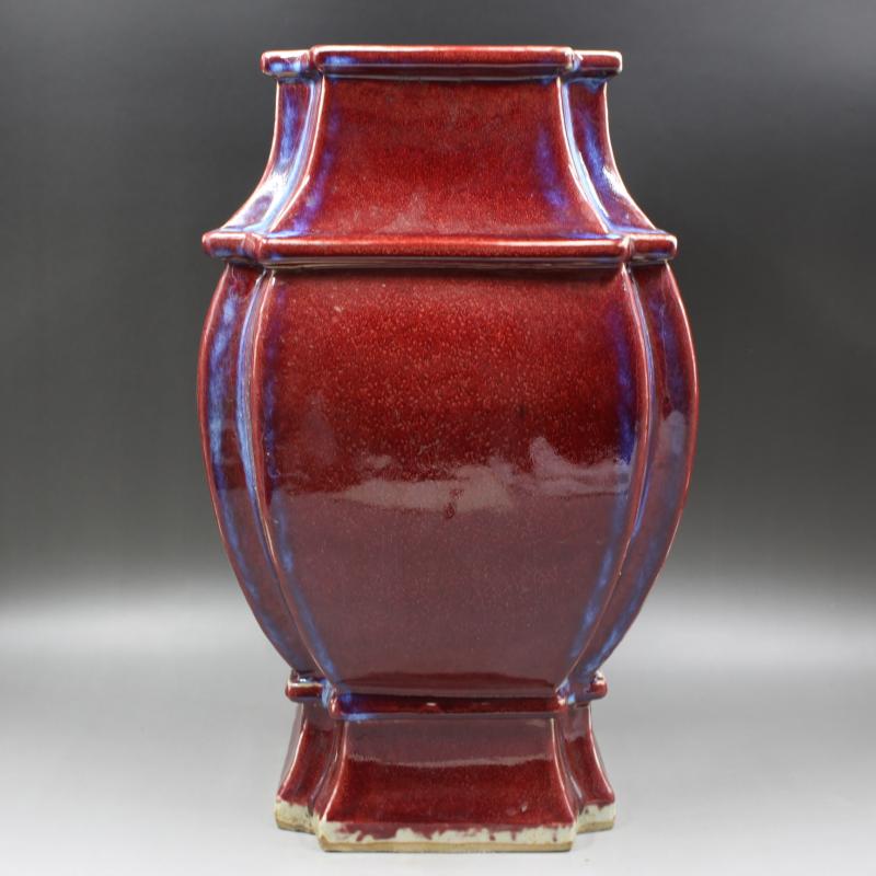 清雍正窯變祭紅鑲器四方瓶仿古家居喜慶瓷器擺件古董古玩老貨收藏1入