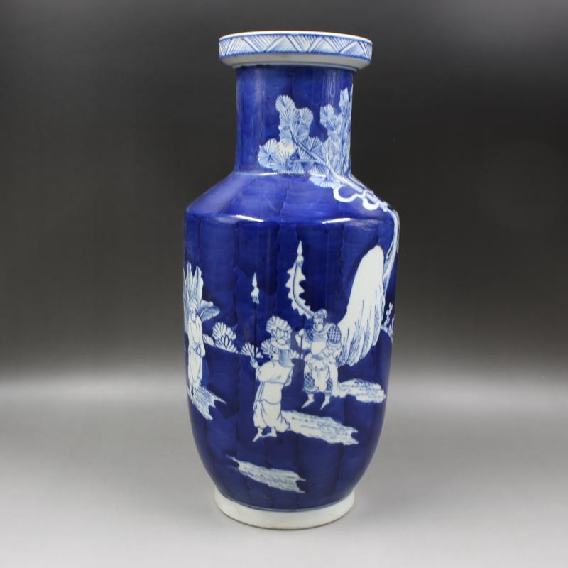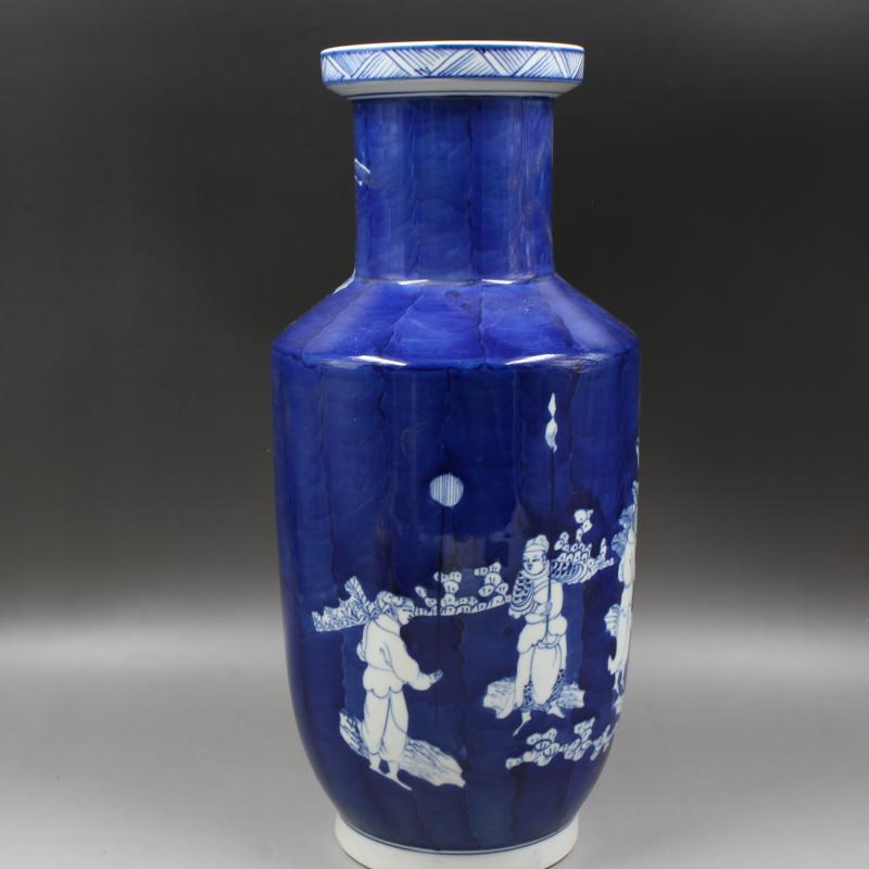 清康熙年制藍地留白人物棒槌瓶手工家居擺件古董古玩老貨仿古瓷器1入