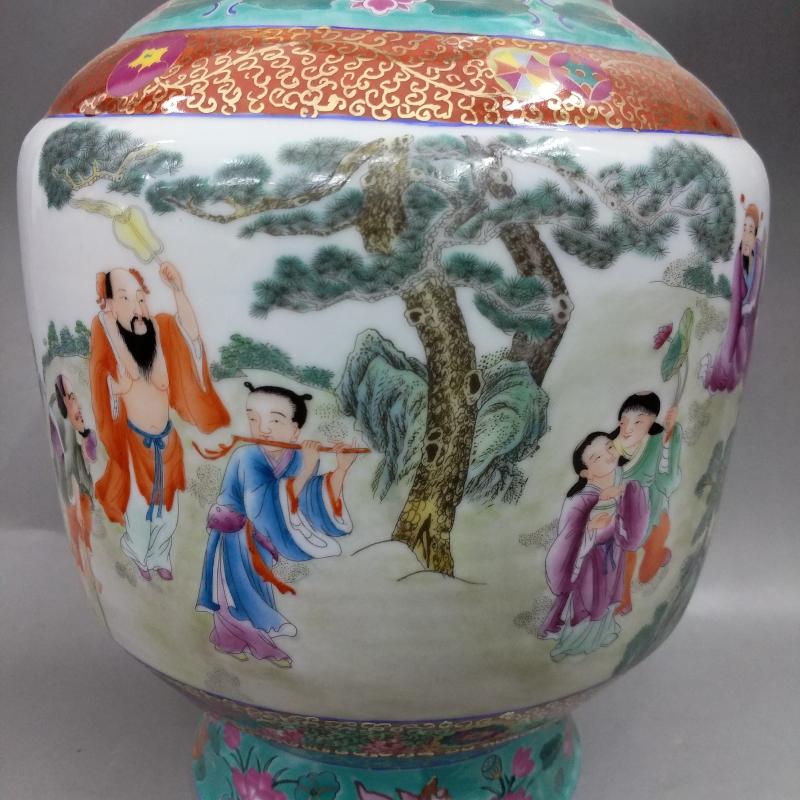 清雍正高檔手繪描金粉彩八仙人物瓷王瓶仿古瓷器擺件古董古玩收藏1入