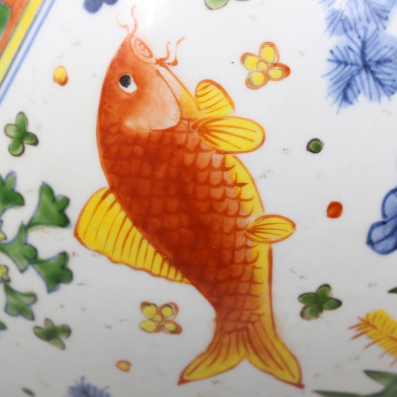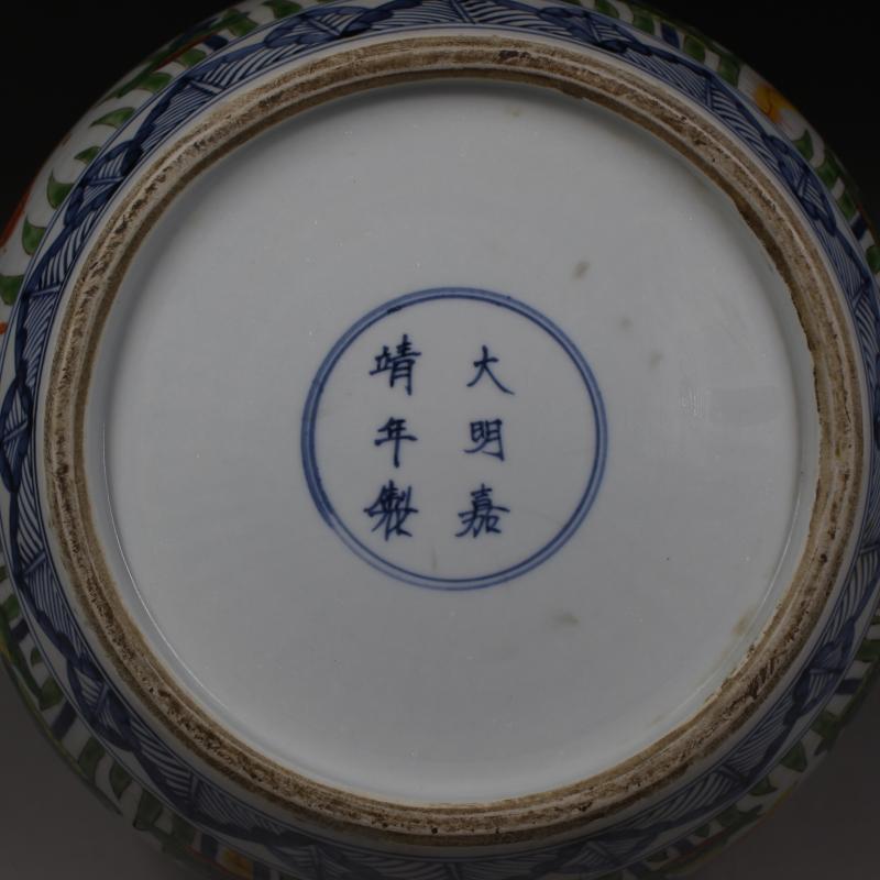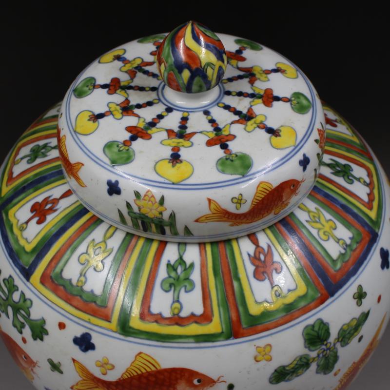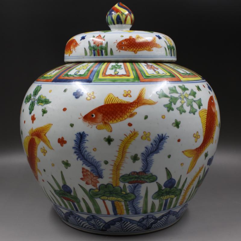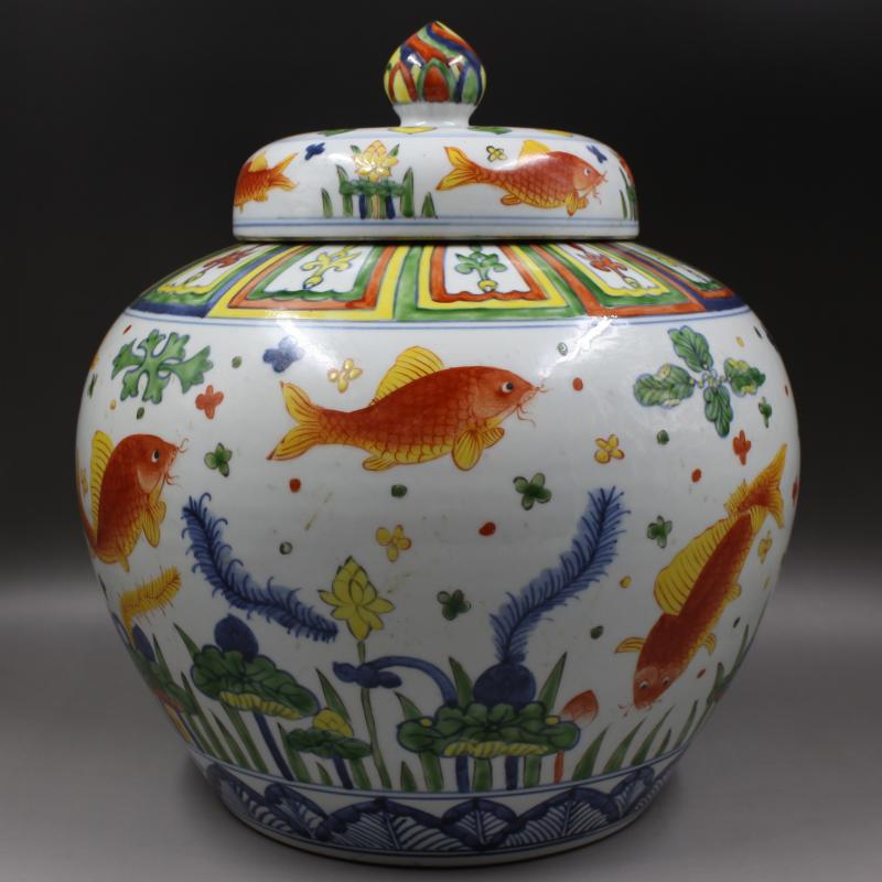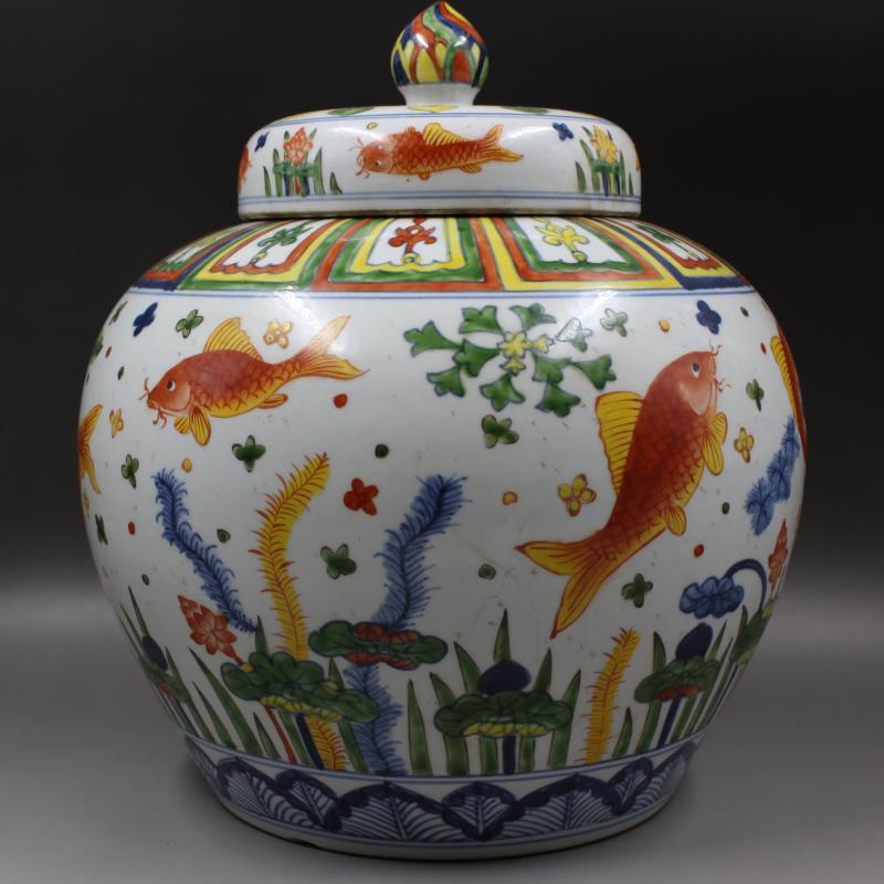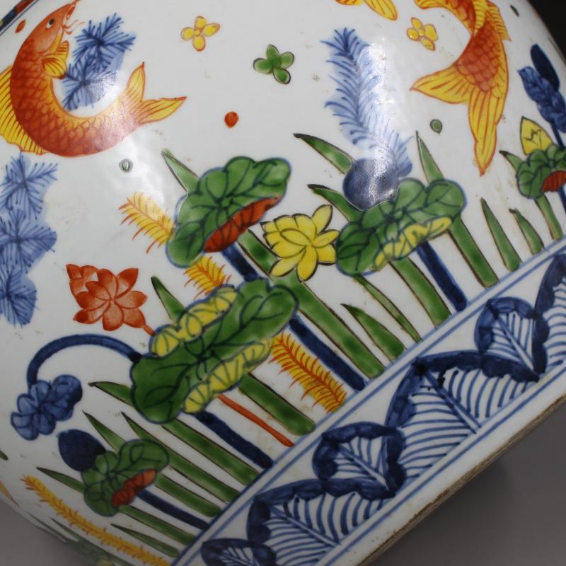 大明嘉靖青花五彩魚澡罐手繪高仿古老貨瓷器家居擺件古董古玩收藏1入
