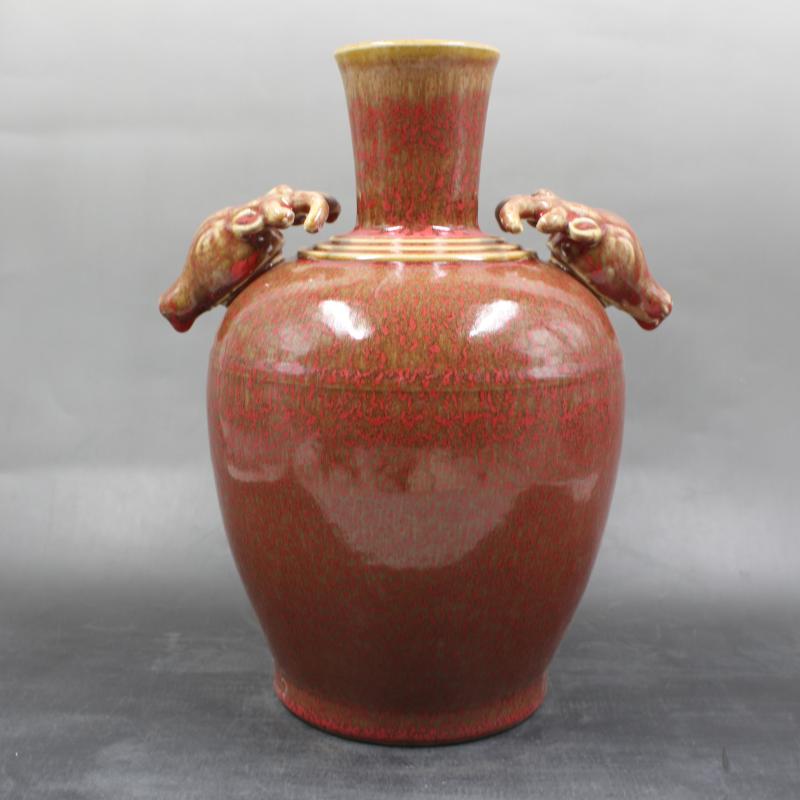 清康熙年制窯變花釉鹿頭尊罐手工仿古出土瓷器家居擺件古董古玩1入