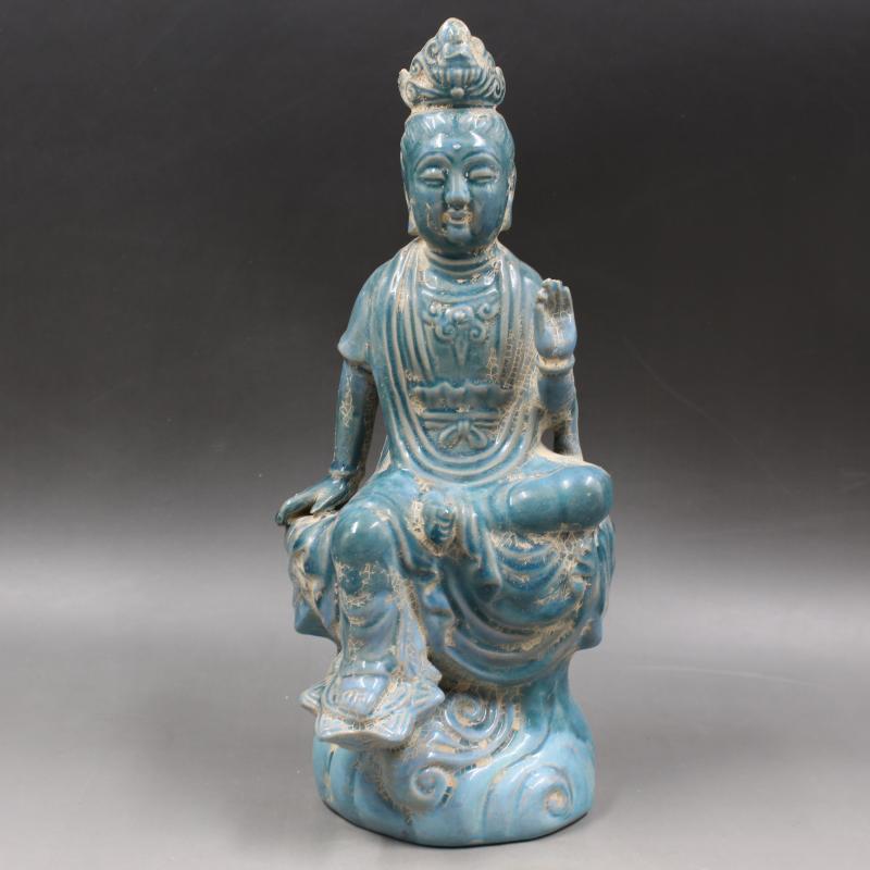 后周柴窯雕刻蓮花菩薩菩薩像 仿古老貨瓷器家居擺件古董古玩收藏1入