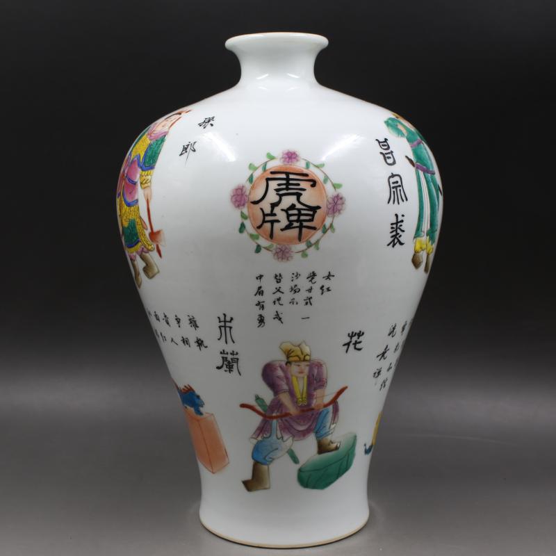 清乾隆年制景德鎮官窯粉彩人物梅瓶 全手繪仿古瓷器收藏 古董古玩1入