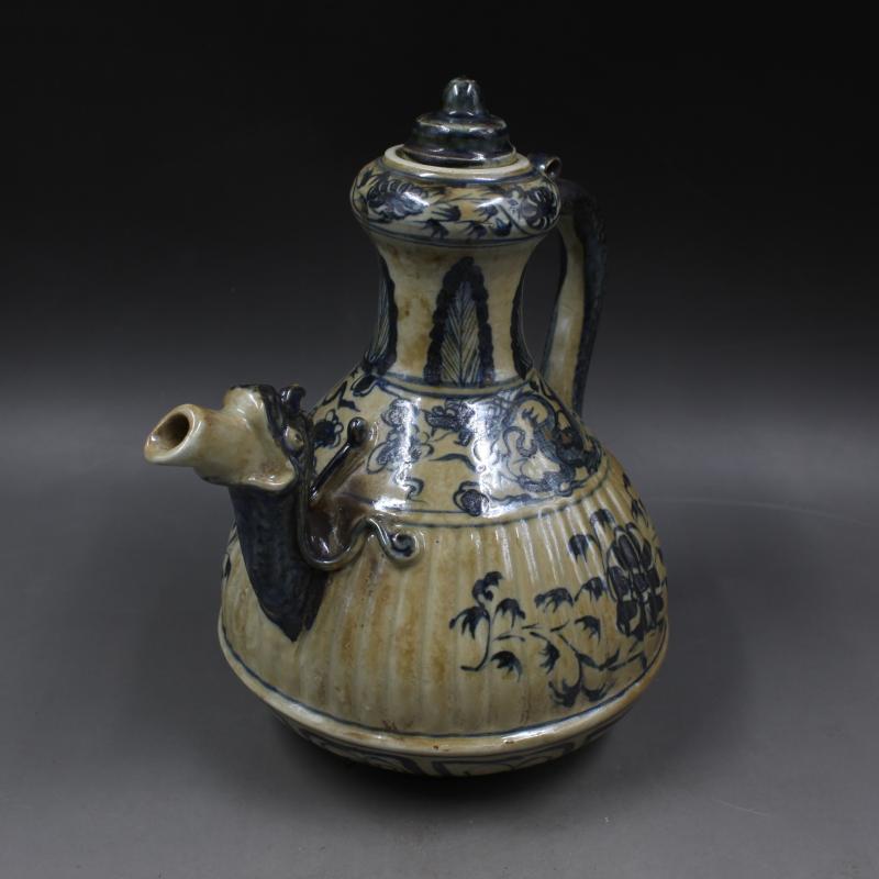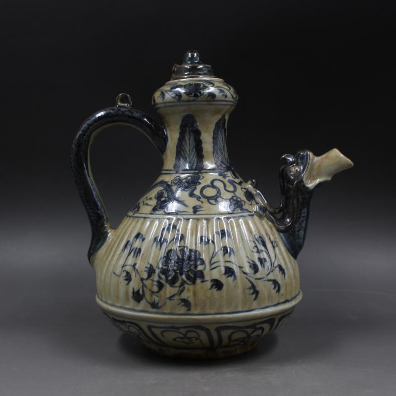 元青花穿花龍紋執壺酒壺 手繪仿古出土老貨瓷器擺件 古董古玩收藏1入