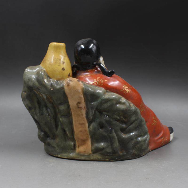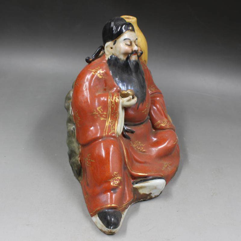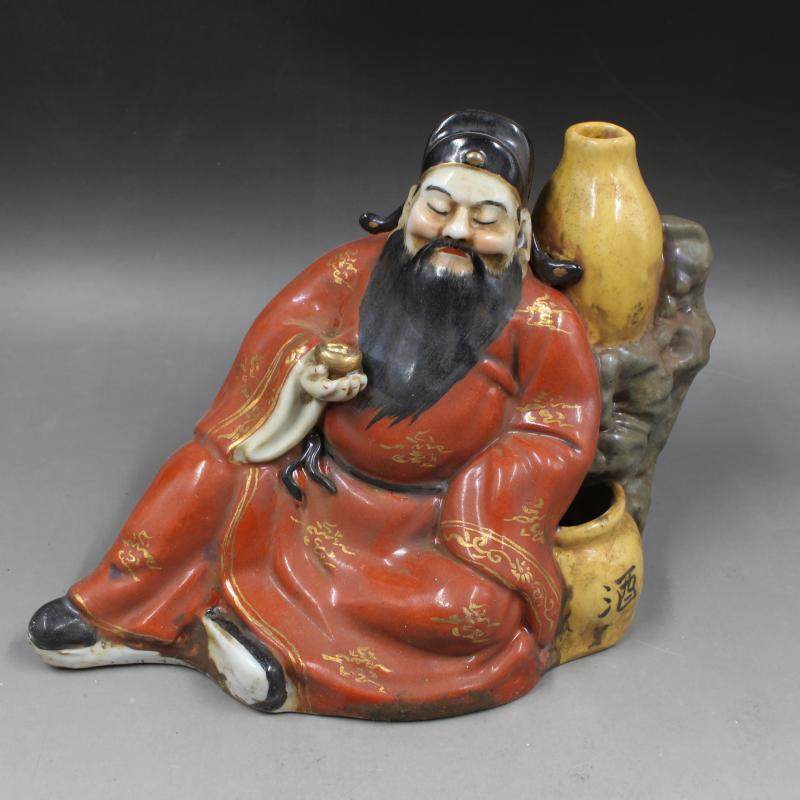 民國雕塑瓷器李白醉酒像 手工老貨瓷器 家居擺件 古董古玩收藏1入