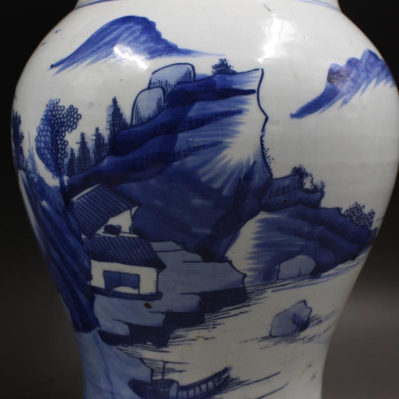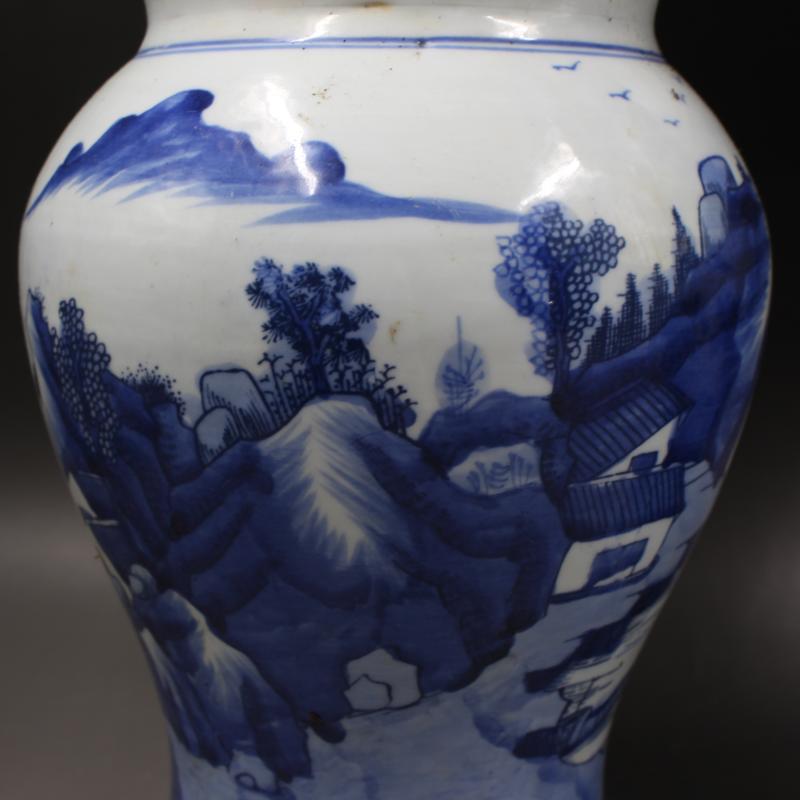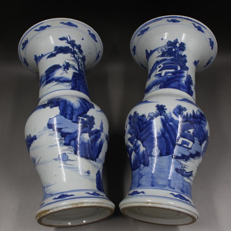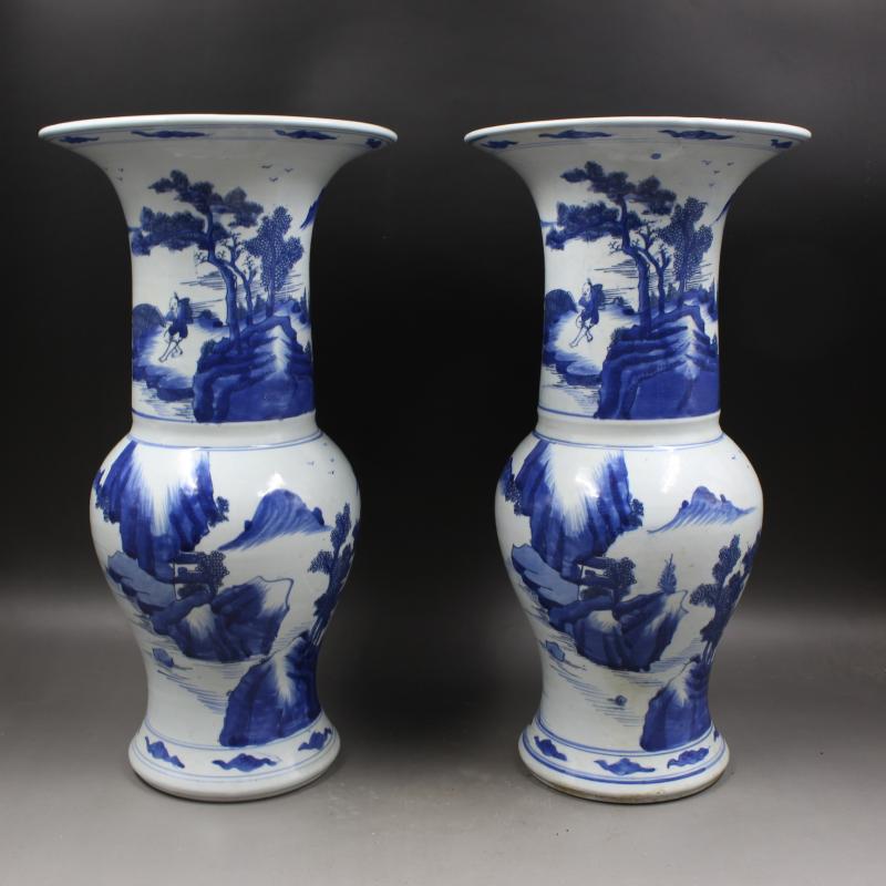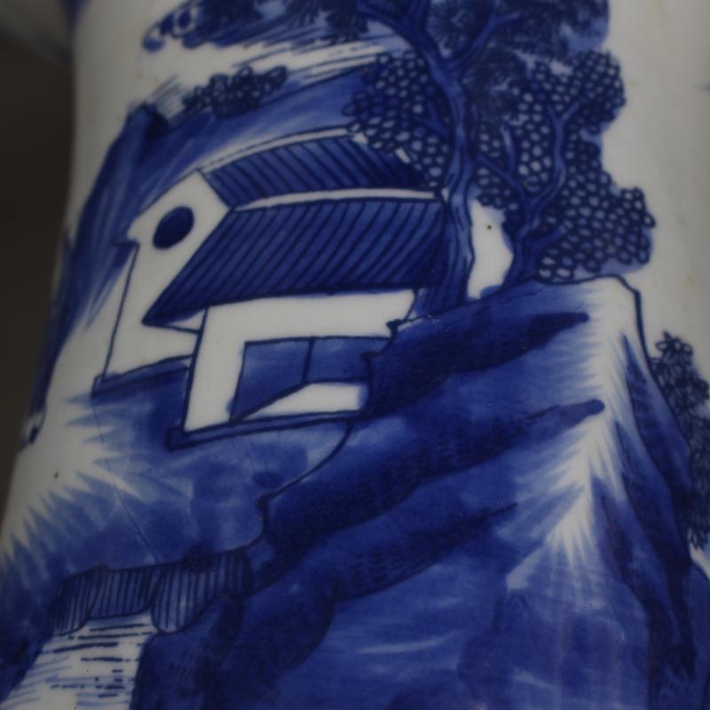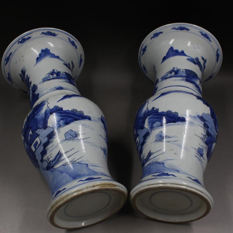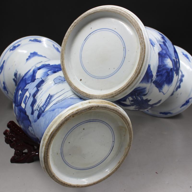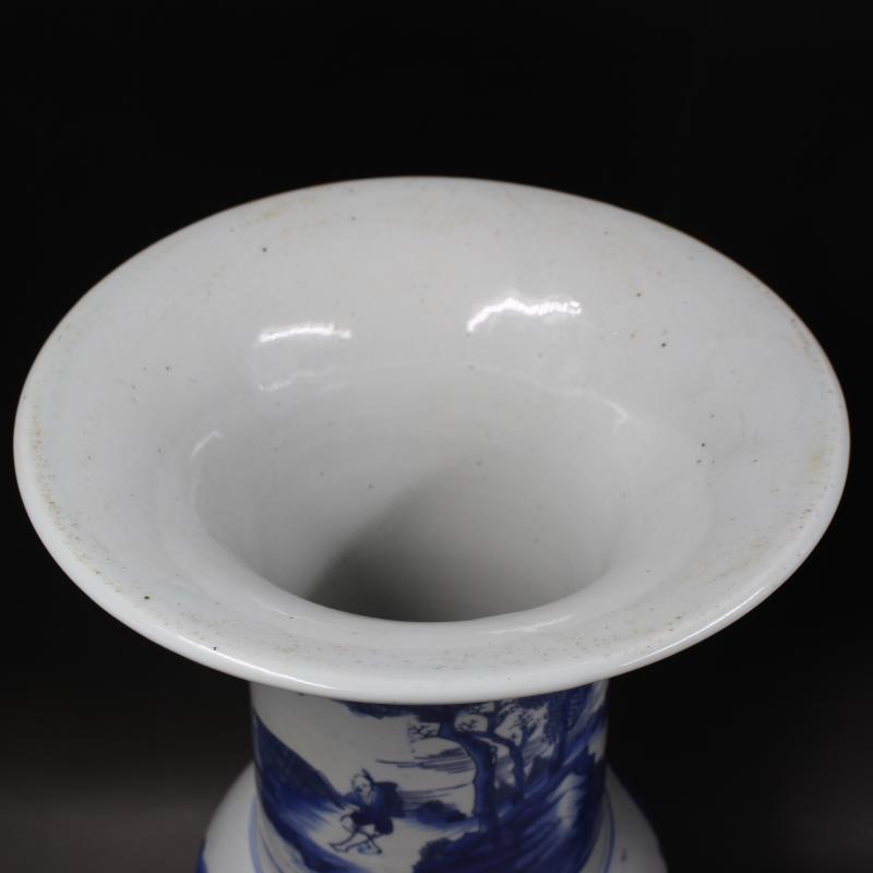 清康熙青花人物山水花觚瓶 手繪仿古老貨瓷器 家居擺件 古董古玩1入