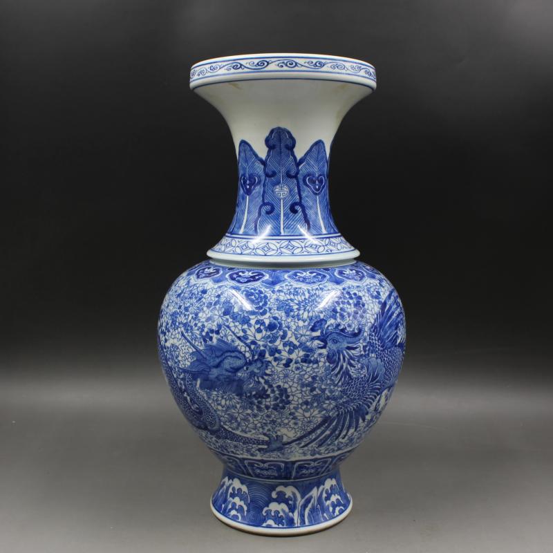 清乾隆年制青花穿花龍鳳紋魚尾瓶 手繪仿古瓷器 家居擺件古玩收藏1入