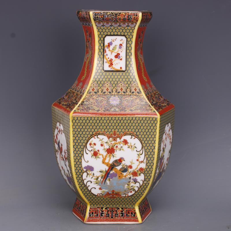 清乾隆年制琺瑯彩花鳥賞瓶仿古瓷器家居中式裝飾擺件古董古玩收藏1入