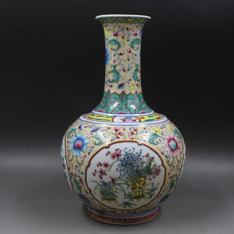 清乾隆年制粉彩描金花紋賞瓶 仿古瓷器 家居復古擺件古董古玩收藏1入