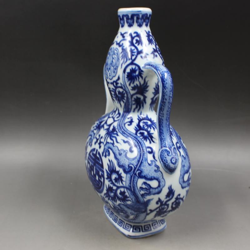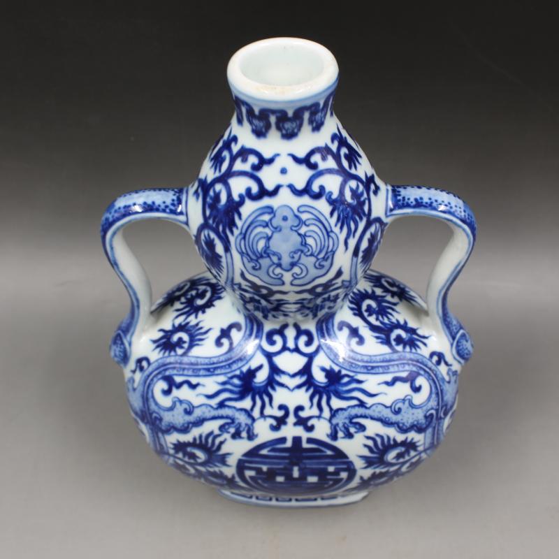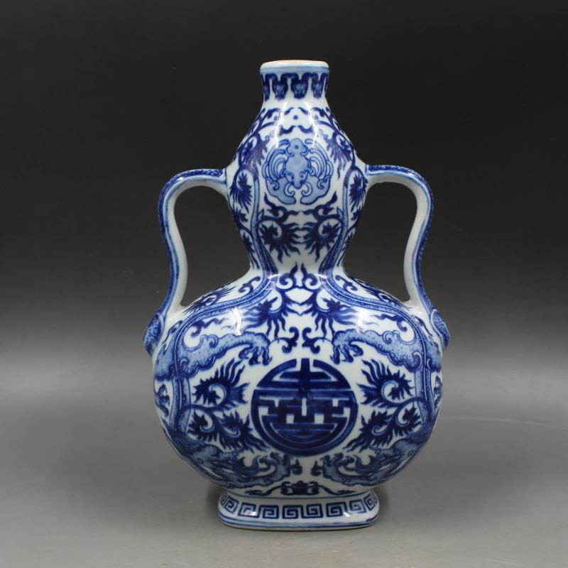 清乾隆年制青花福壽葫蘆瓶 手繪景德鎮仿古工藝瓷器擺件 古玩收藏1入