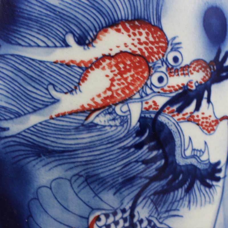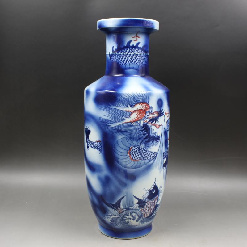 清康熙年制青花釉里紅水龍紋棒槌瓶 家居仿古瓷器擺件 古玩收藏1入