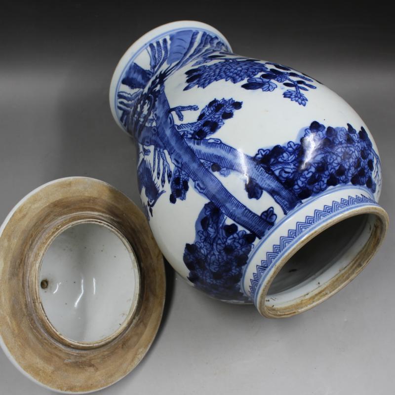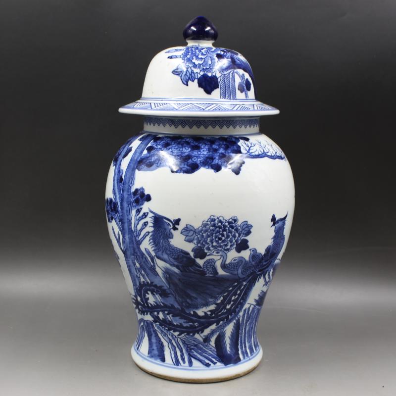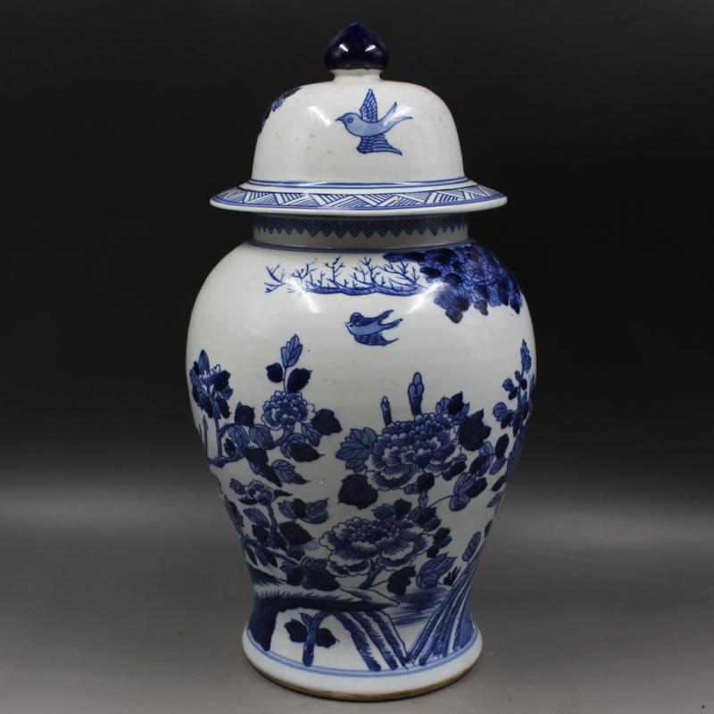 清康熙年制青花鳳戲牡丹將軍罐 仿古老貨瓷器 家居擺件 古玩收藏1入