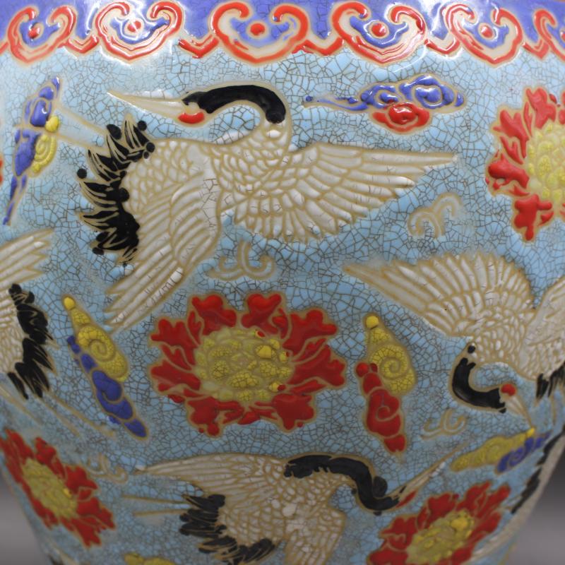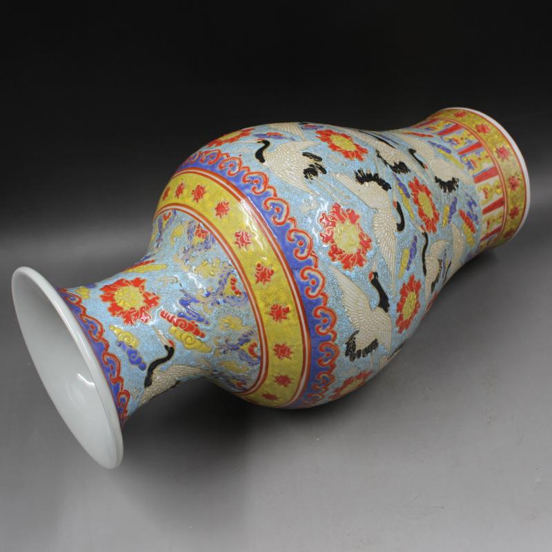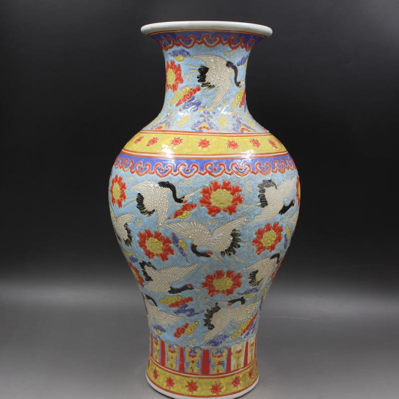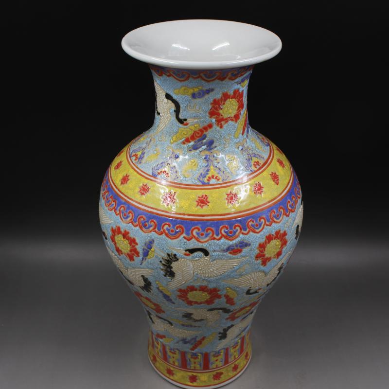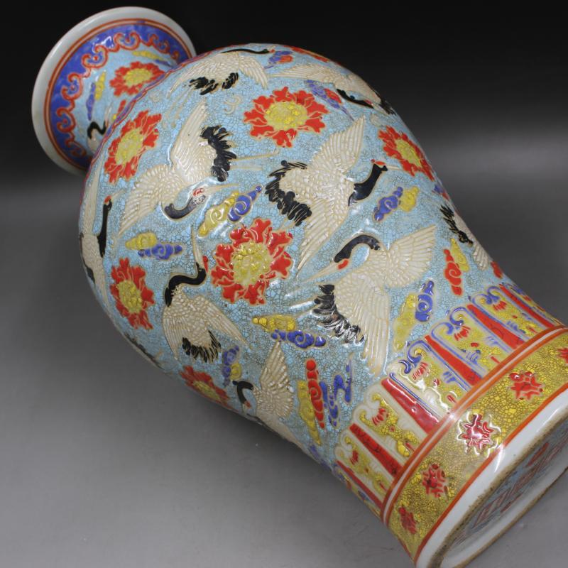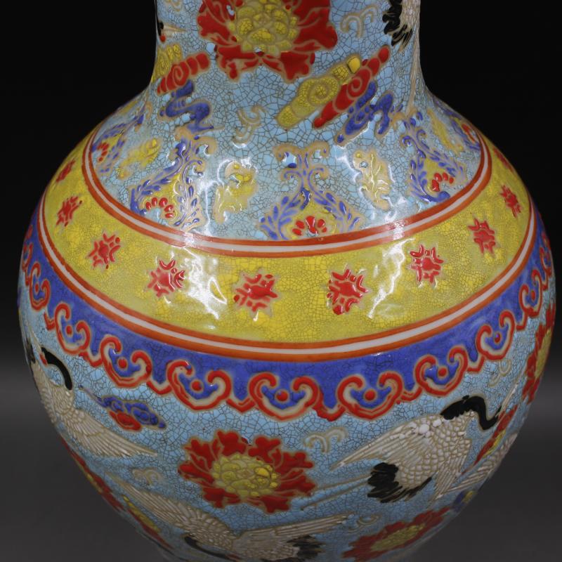 清乾隆年制夜光瓷粉彩鶴紋魚尾瓶 仿古老貨瓷器 家居擺件古玩收藏1入