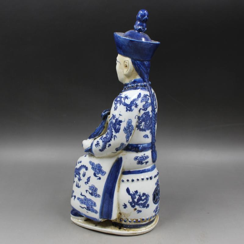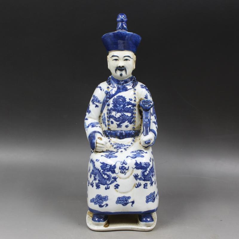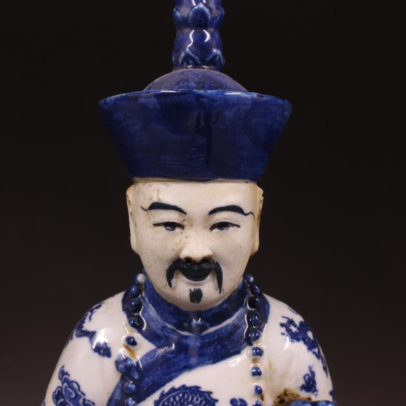 清雕塑青花人物雍正像 家居擺件 仿古老貨瓷器擺件 古董古玩收藏1入